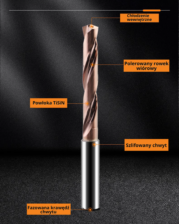 Precyzyjne wiertło węglikowe CarboDrill 5D to narzędzie wysokiej jakości, przeznaczone do wiercenia w twardych materiałach. Dzięki konstrukcji z pełnego węglika (VHM) oraz powłoce TiSiN, zapewnia wyjątkową trwałość, odporność na zużycie i doskonałe parametry skrawania. To narzędzie zostało zaprojektowane do precyzyjnego wiercenia w materiałach o twardości do 55 HRC, oferując doskonałą wydajność i trwałość.