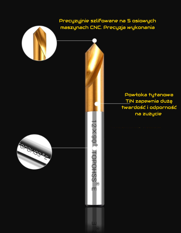 ✅ Fazownik/nakiełek HSS E - frezy nadają się zarówno do wykonywania nakiełków jak i wszelkich faz usuwając zbędny grat/zadziory.