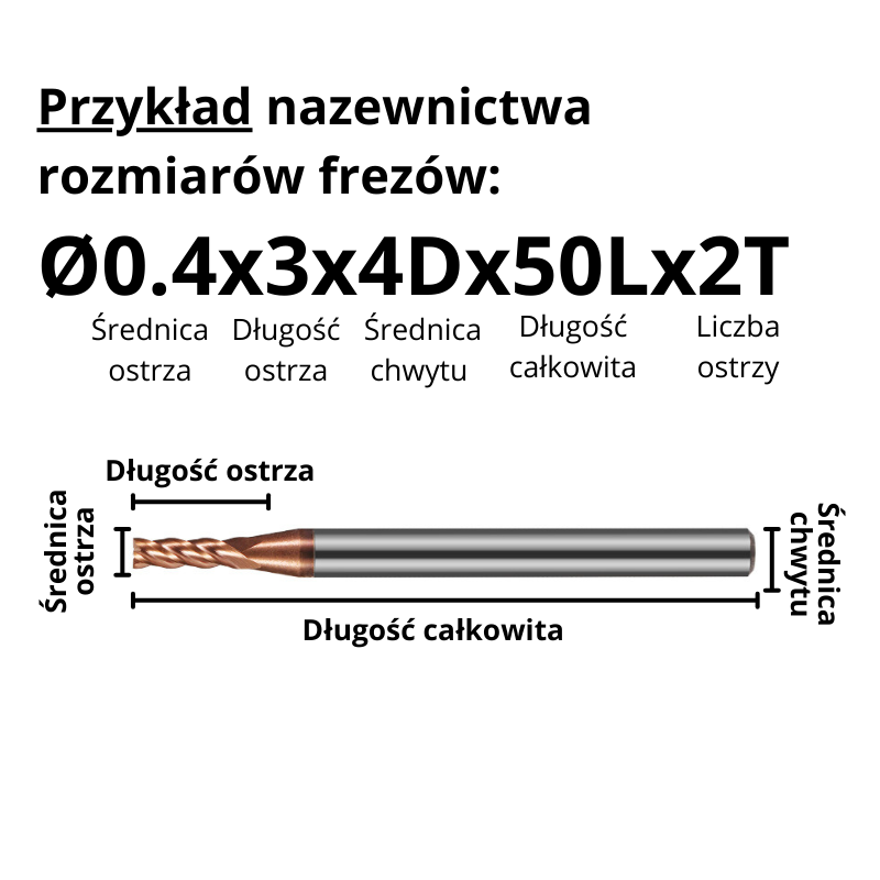 Frez 2-ostrzowy TiSiN | VHM | Małe rozmiary Ø0.3 - Ø0.9