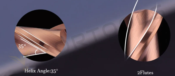 - Dwa ostrza frezu z węglików spiekanych zapewniają lepsze odprowadzanie wiórów w porównaniu do frezów z czterema ostrzami.