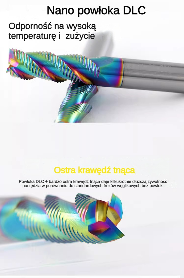 - Wysoka twardość i odporność na ścieranie dzięki powłoce DLC.