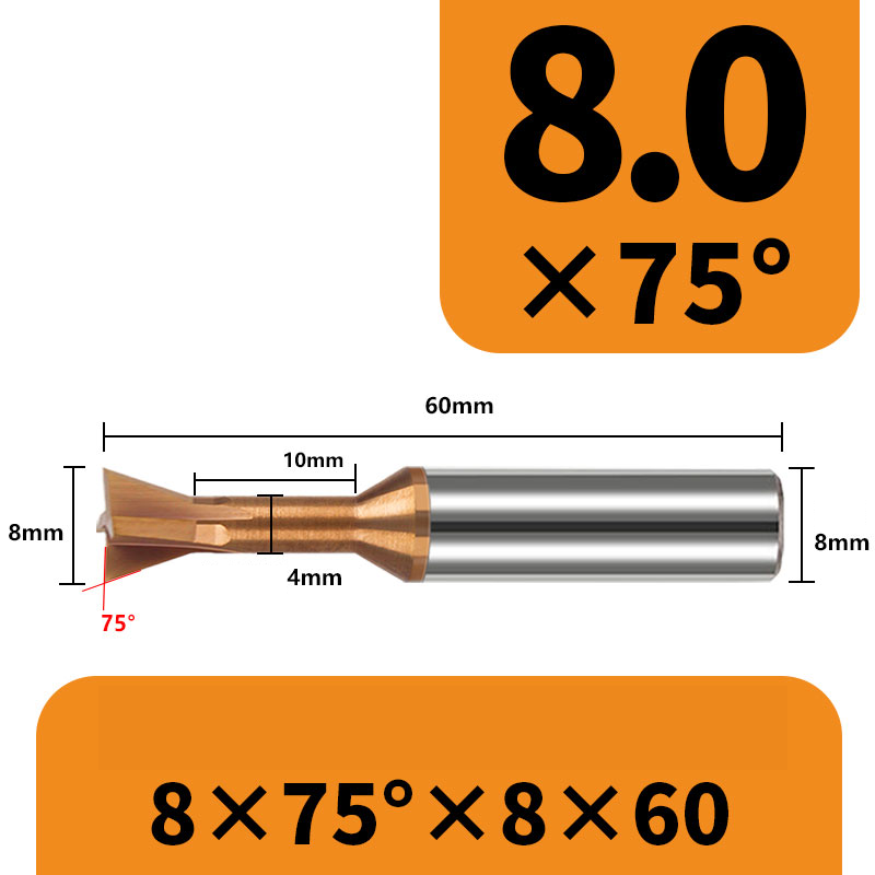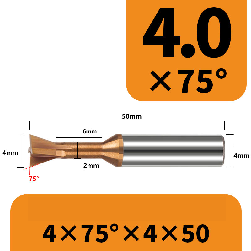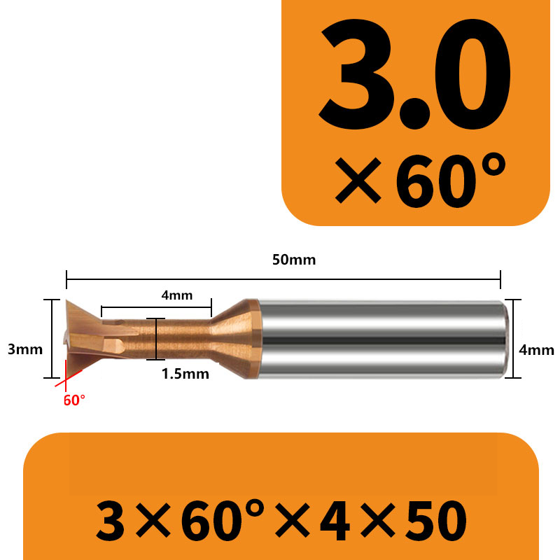 Frez 4-ostrzowy "jaskółczy ogon" dovetail VHM - 30°,45°, 60°, 75° TiSiN