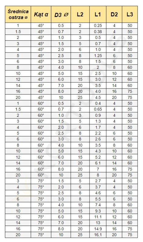 Średnica: od Ø2mm do Ø20mm.