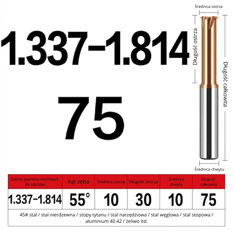 Frez 55° do gwintów Whitworth/BSW/BSF/BSP do gwintowania