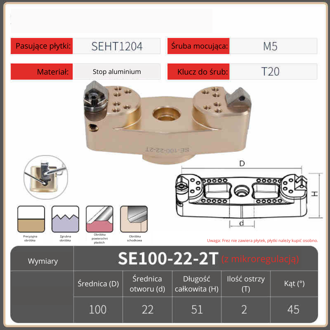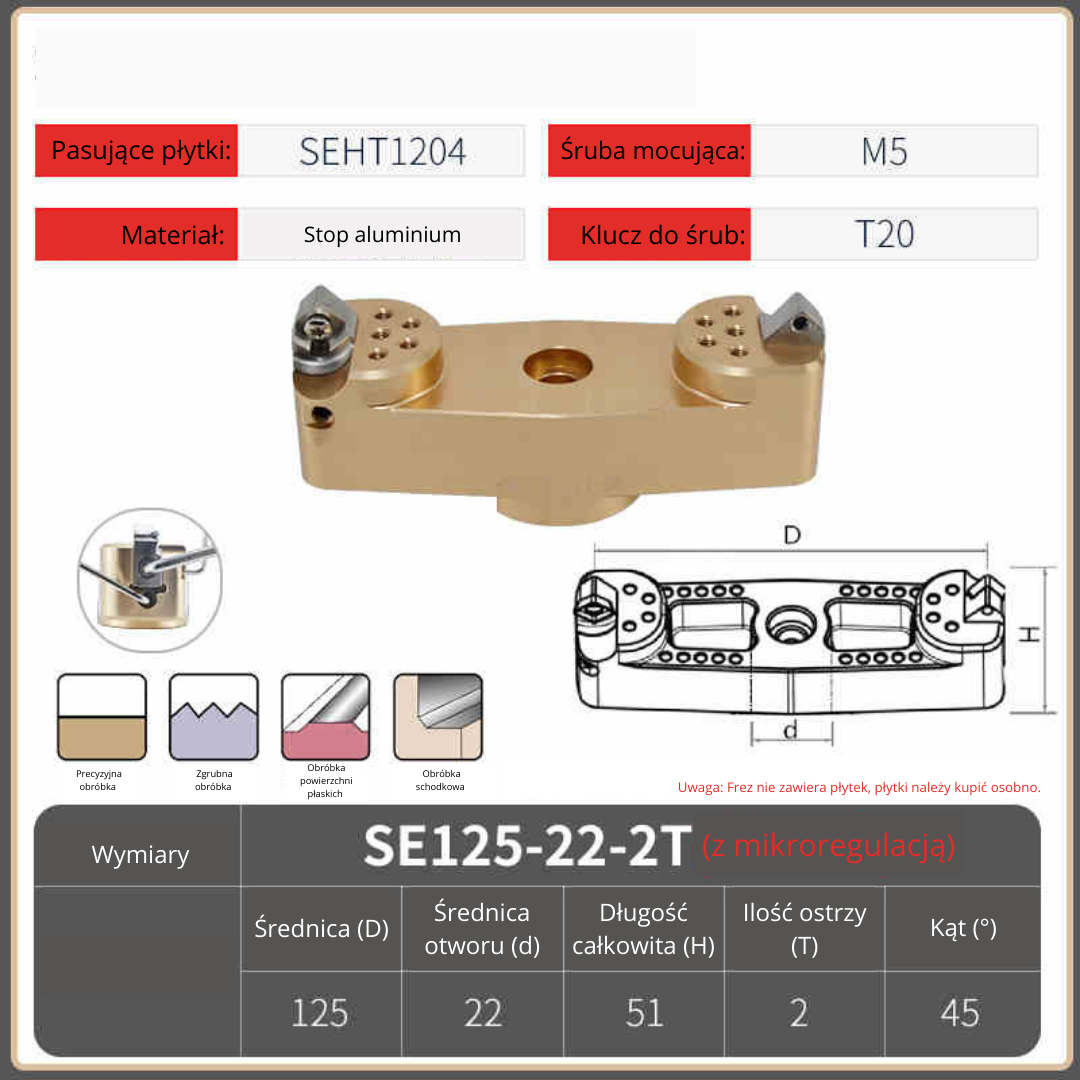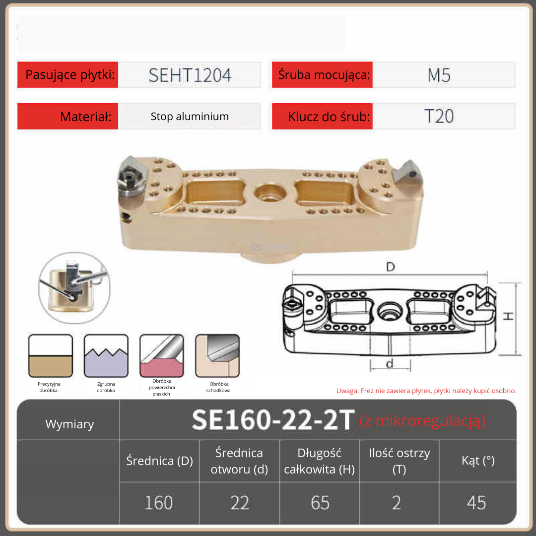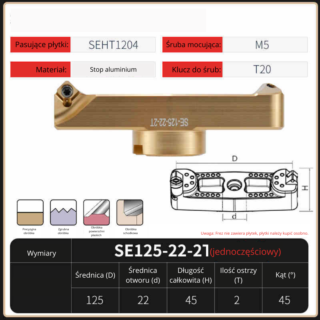 Frez Czołowy, Głowica do Obróbki Wykończeniowej, Planowanie Wykończeniowe, SmoothCut XT Na Płytki SEHT