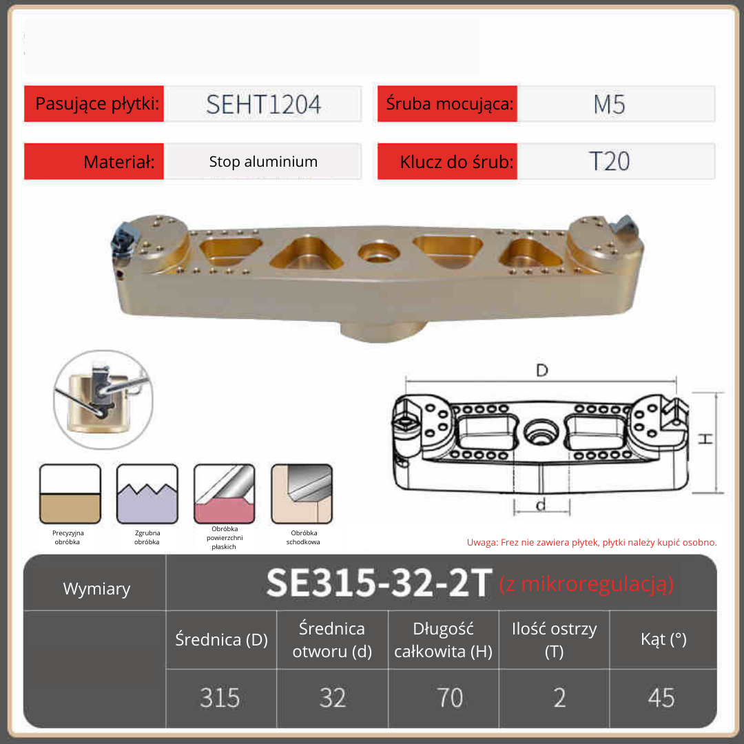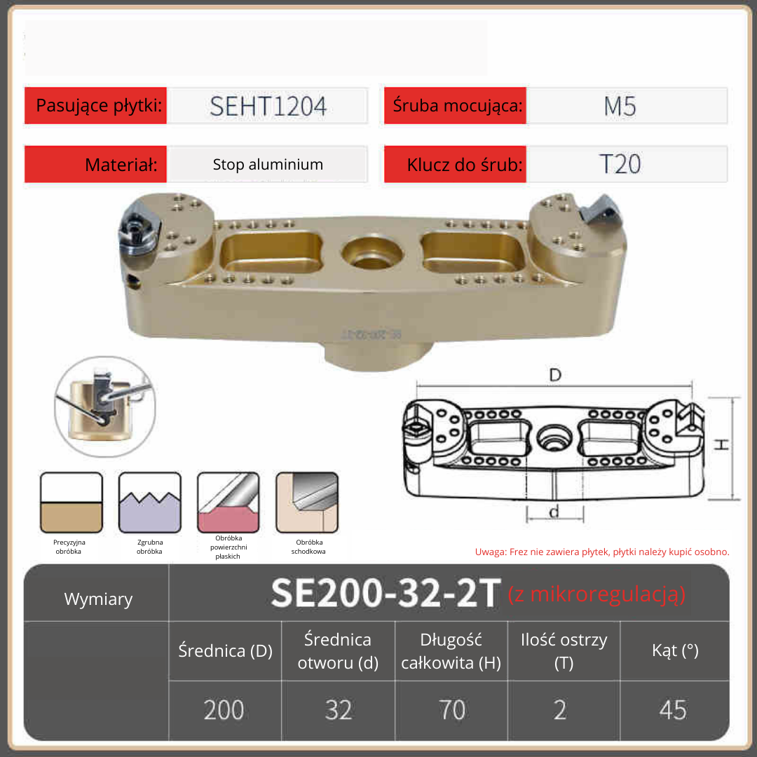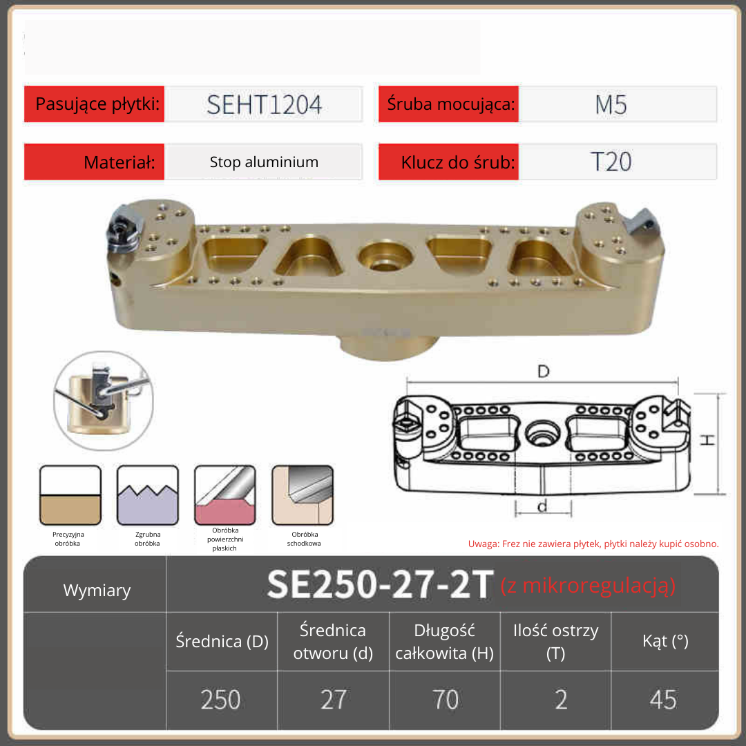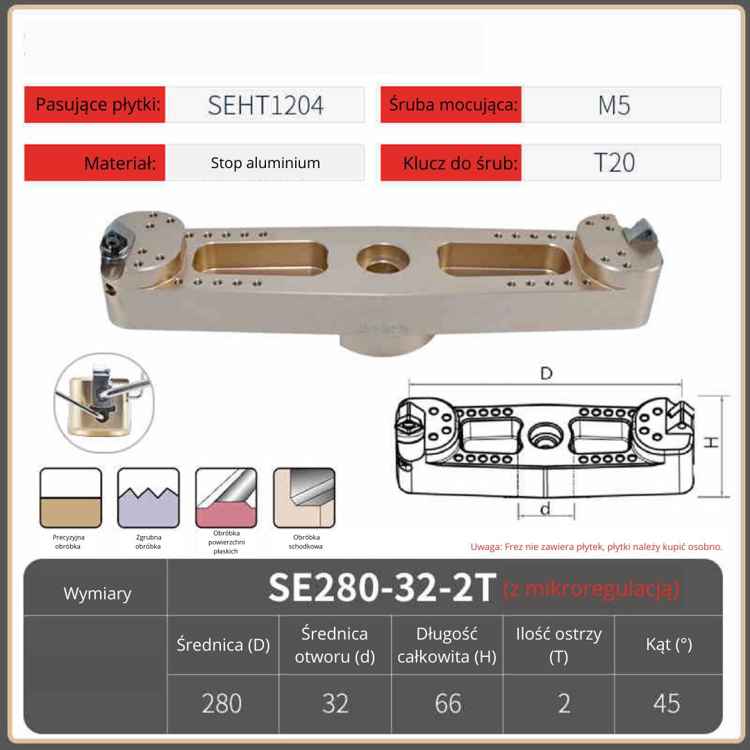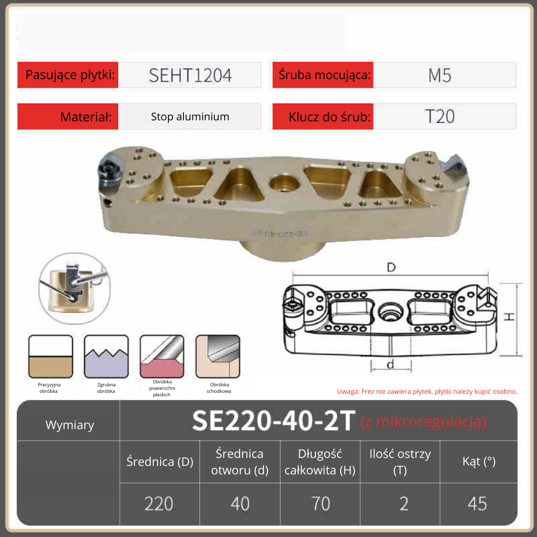 Frez Czołowy, Głowica do Obróbki Wykończeniowej, Planowanie Wykończeniowe, SmoothCut XT Na Płytki SEHT