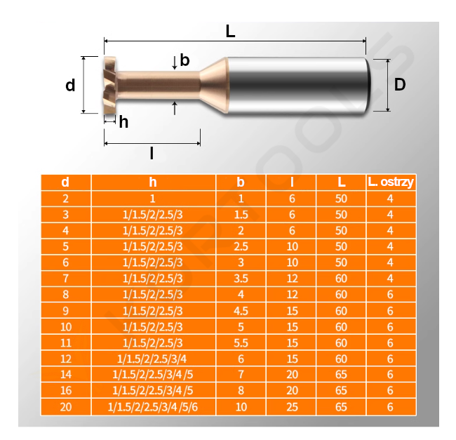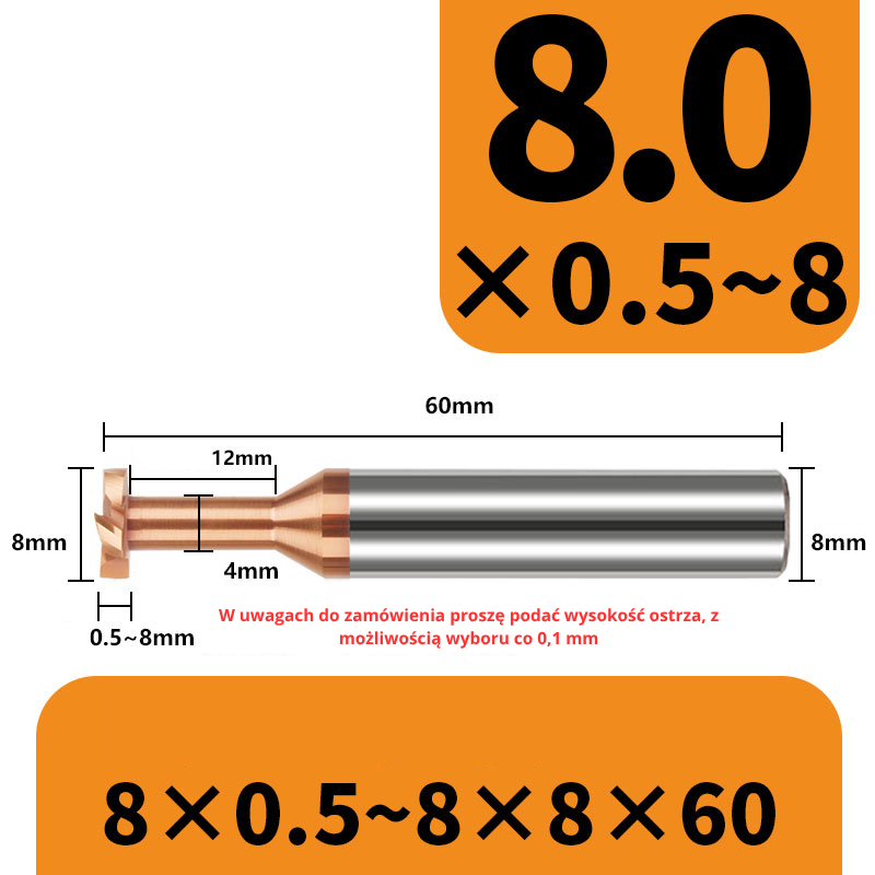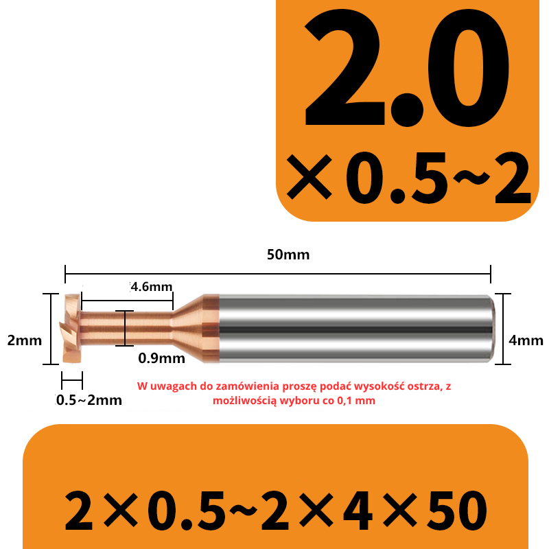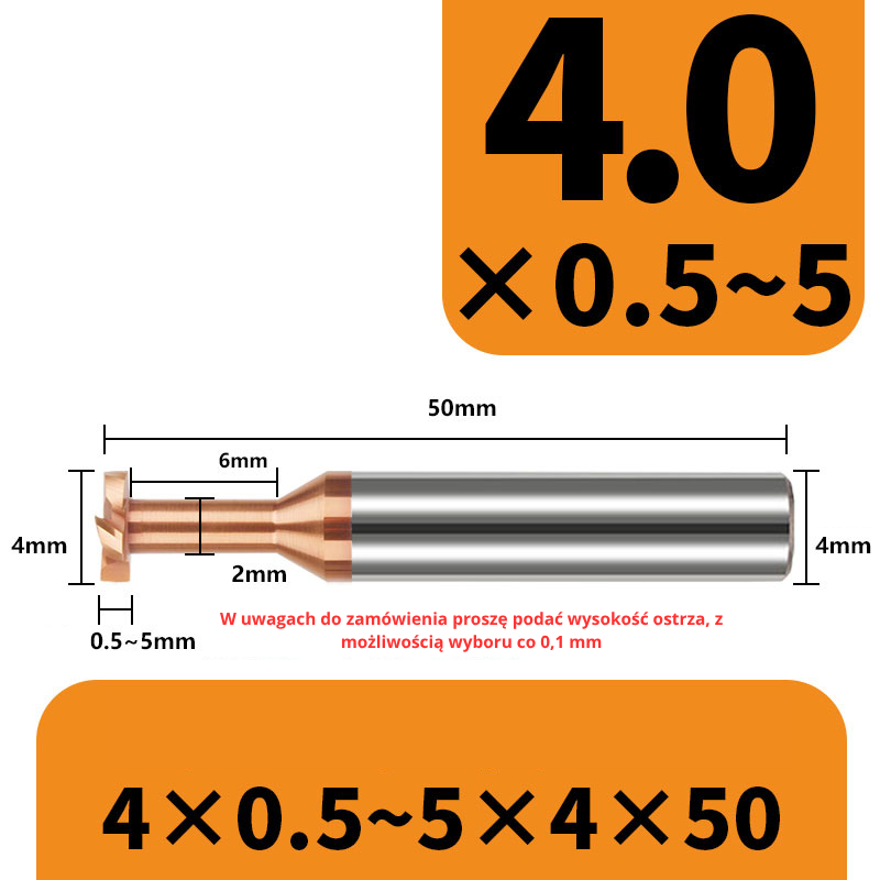 - Średnica: od Ø2mm do Ø20mm (dodatkowo, na zamówienie oferujemy możliwość wykonania frezu o wysokości z dokładnością co 0,1 mm).