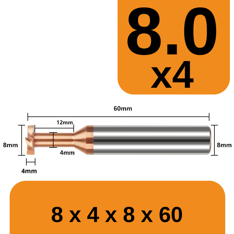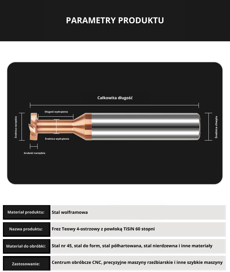 Frez teowy 4 ostrzowy (4 krawędzie skrawające) w powłoce TiSiN (obrabia materiały o twardości do 55HRC w tym stal, stal nierdzewa, tytan, stale stopowe, aluminium , mosiądz itp).