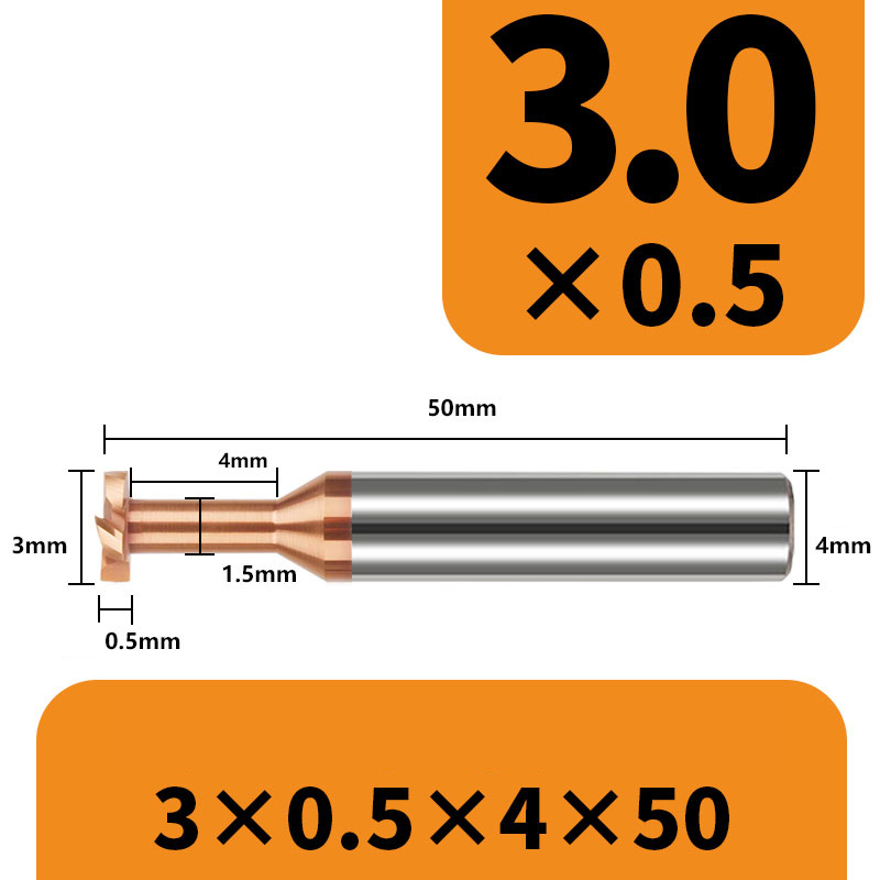 Przykład: Ø4x0.5Hx50L --> Średnica ostrza d=4mm; Wysokość ostrza h=0.5mm; Długość całkowita L=50mm.