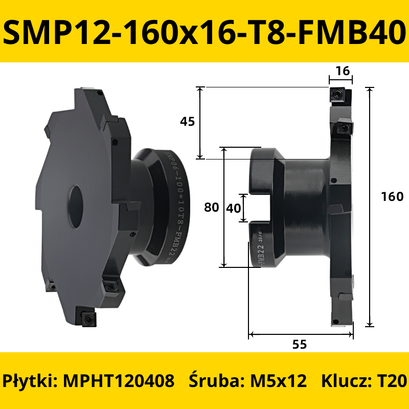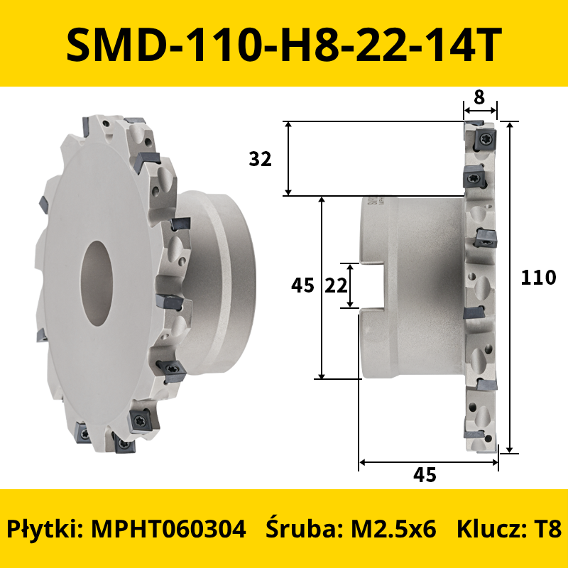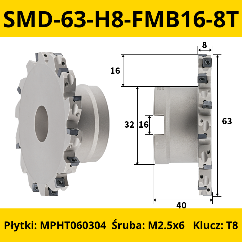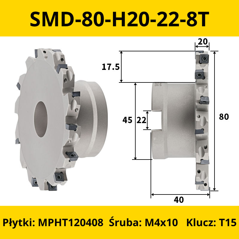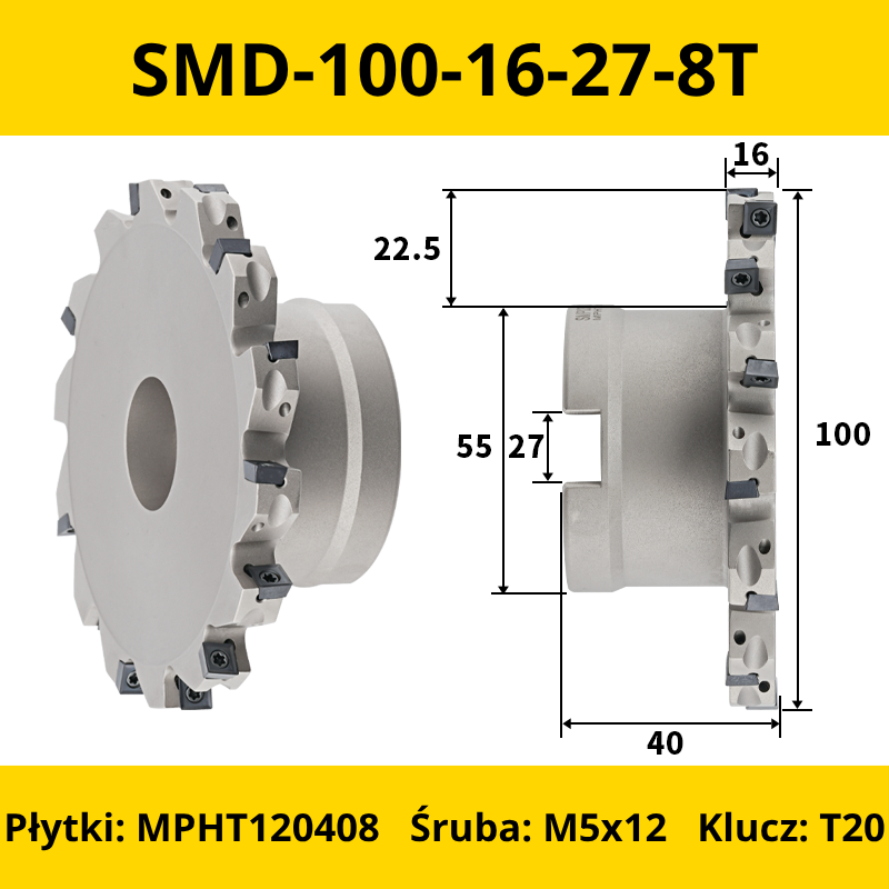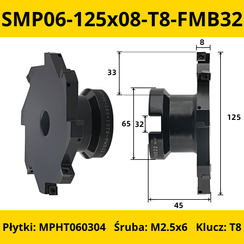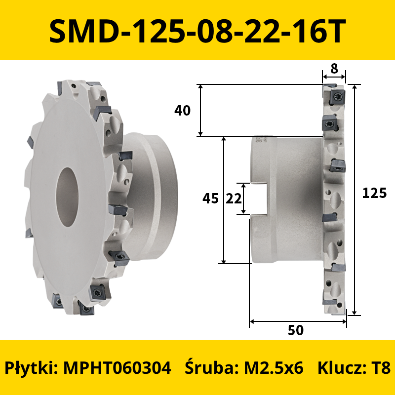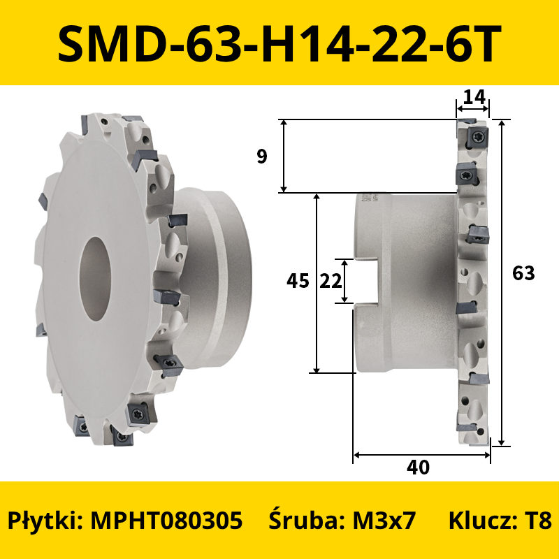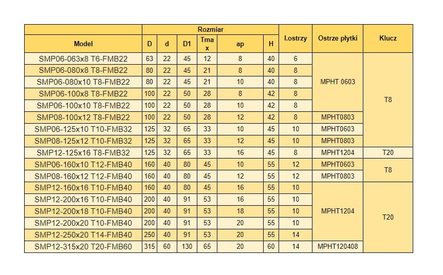 Frez tarczowy do rowków SMP - głowica teowa Ø63-Ø315 na płytki weglikowe MPHT SMD