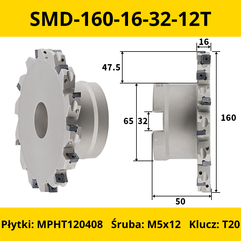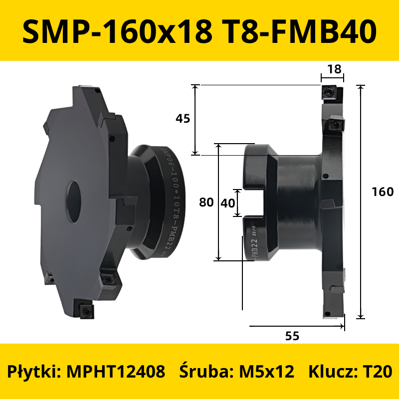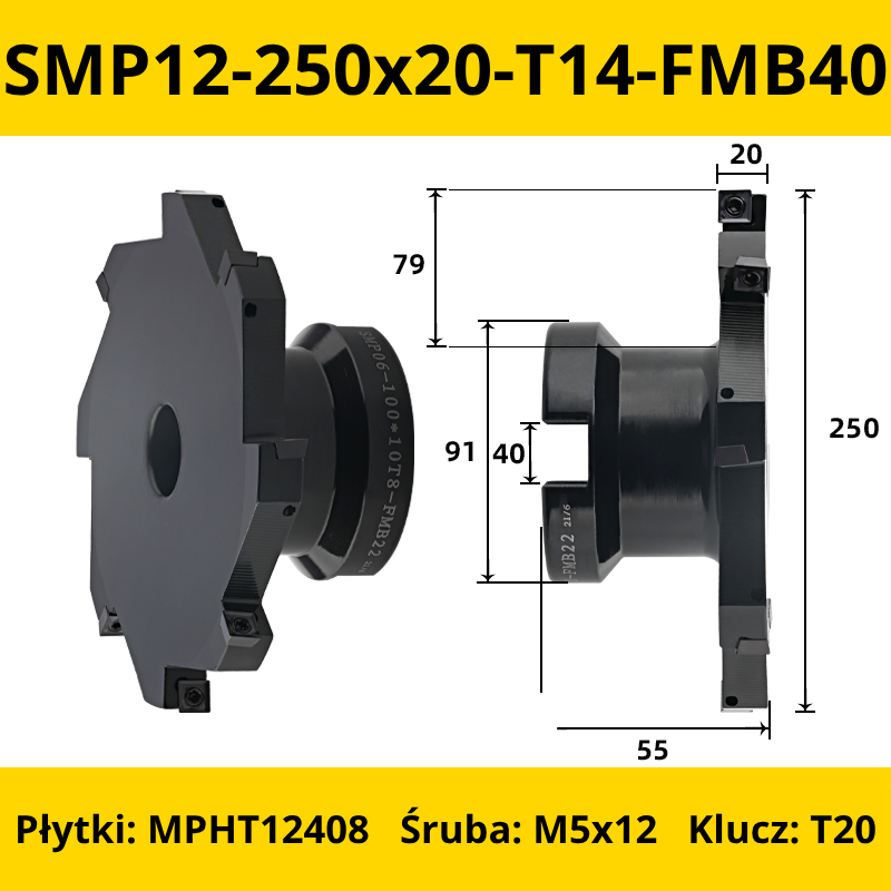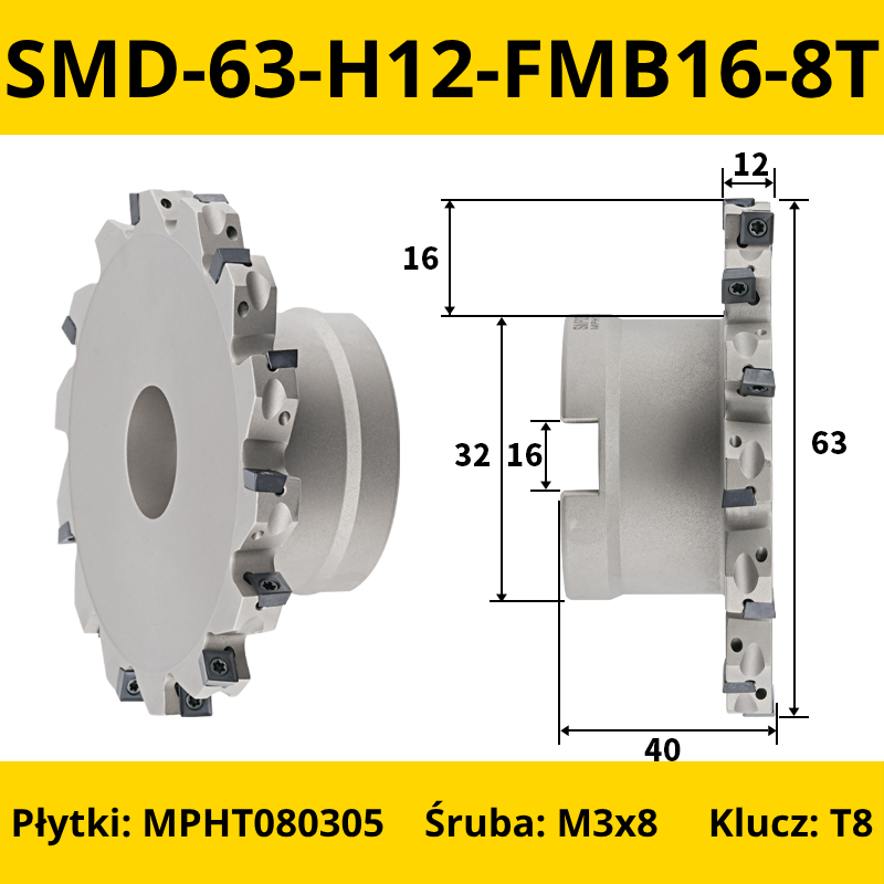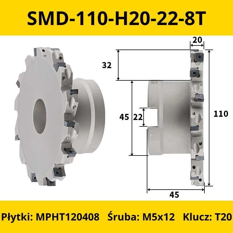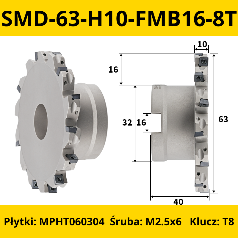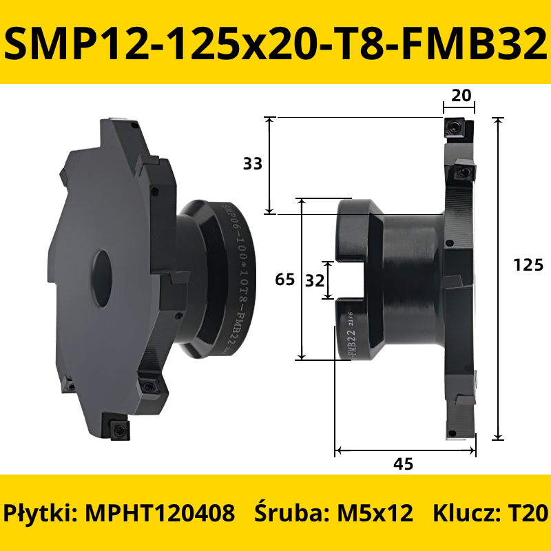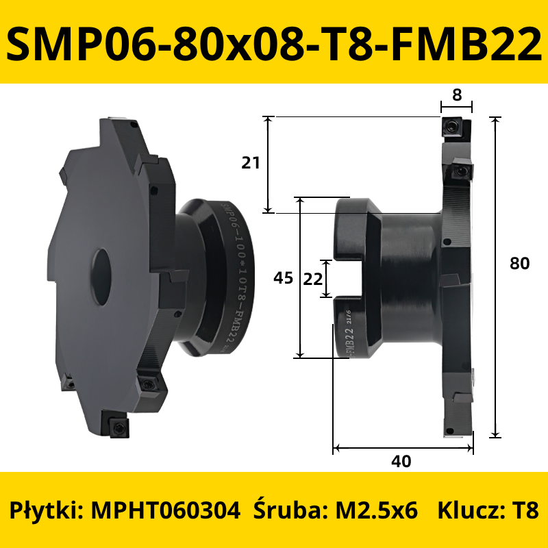Frez tarczowy do rowków SMP - głowica teowa Ø63-Ø315 na płytki weglikowe MPHT SMD