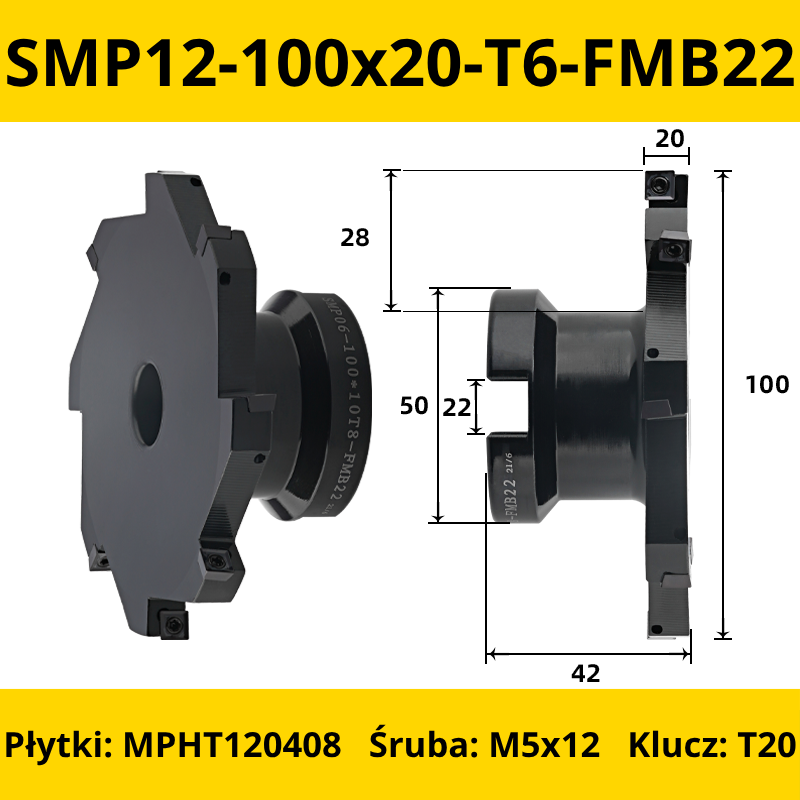 Frez tarczowy do rowków teowych SMP - głowica teowa Ø63-Ø315 na płytki weglikowe MPHT