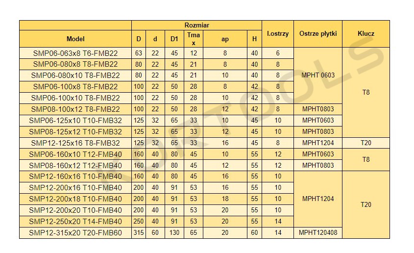 - Głowica jest na wymienne płytki, a pasujący typ płytek to: MPHT