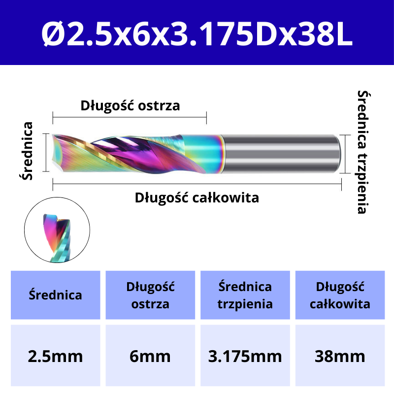 Ø3.175x6x3.175Dx38L