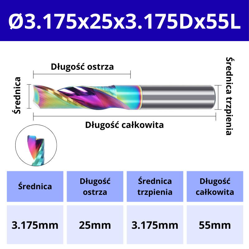 Ø3.175x25x3.175Dx55L