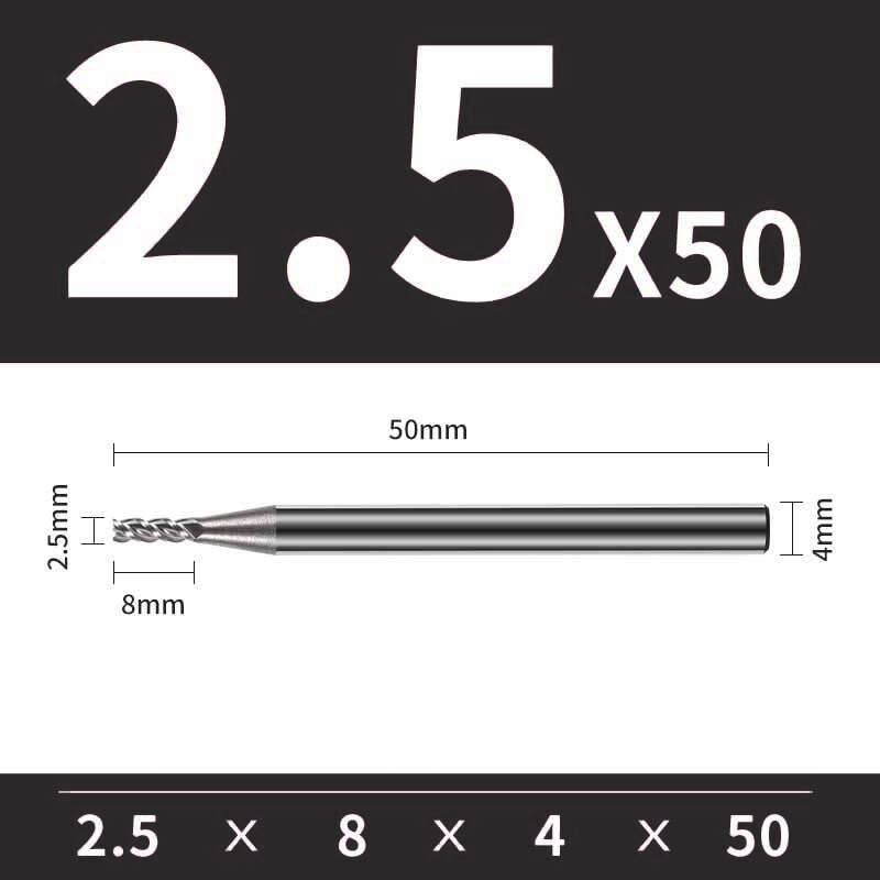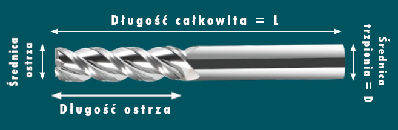 Przykład: Fi4x9x4Dx50L = Średnica Ostrza FI4 x Długość ostrza 9 x Średnica trzpienia 4D x Długość całkowita 50L