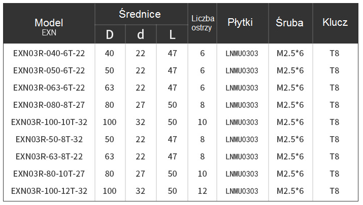 - Wykonana z materiału 42CrMo 40-42HRC na płytki z 4 krawędziami tnącymi LNMU0303ZER.