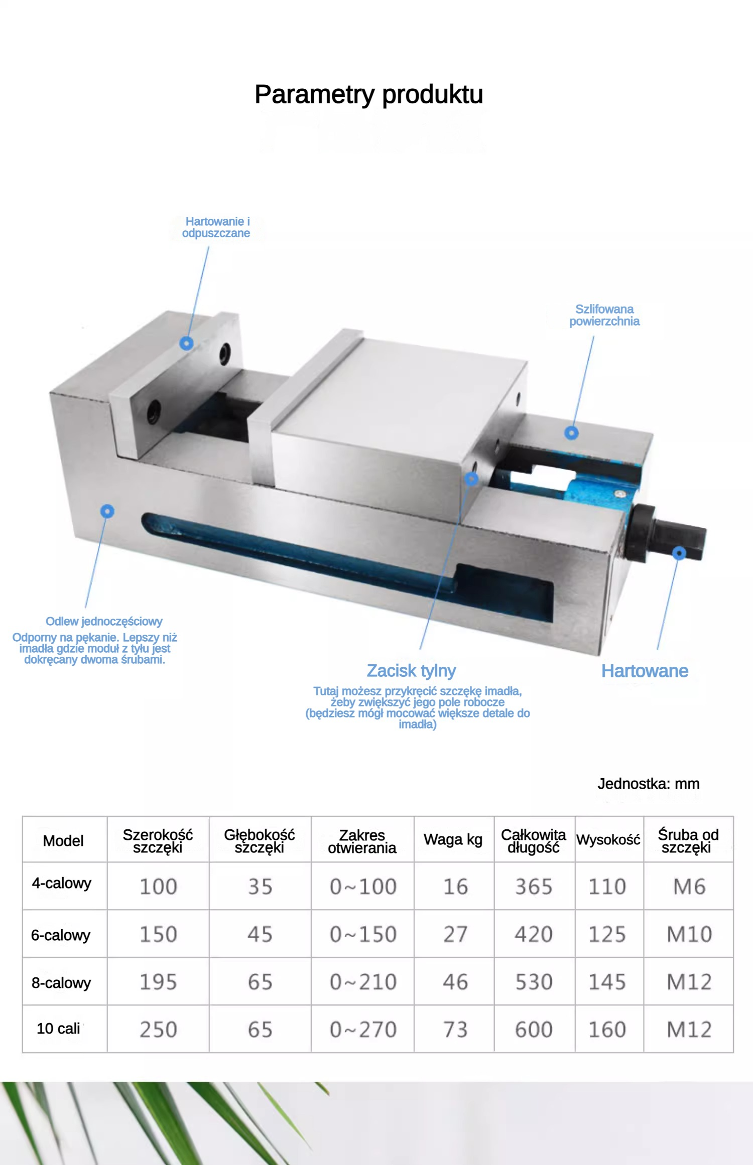 • Imadło maszynowe precyzyjne jest używane przy pracy na szlifierkach, frezarkach, obrabiarkach CNC i centrach obróbkowych.