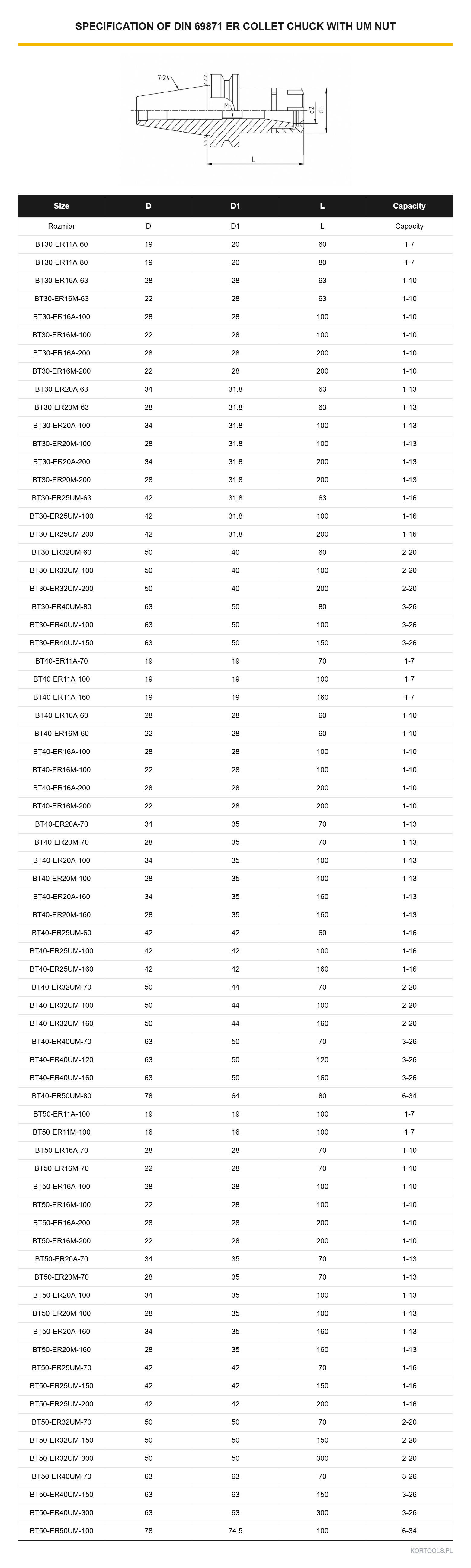 Oprawka DIN69871 BT30 BT40 BT50 ER11 ER16 ER20 ER25 ER32 ER40 ER50 G2.5
