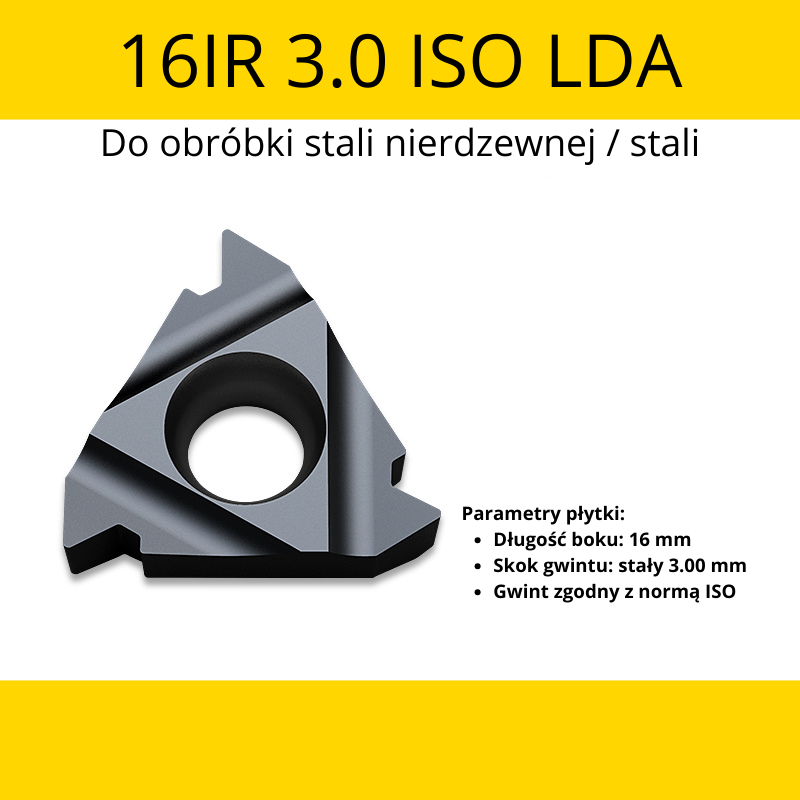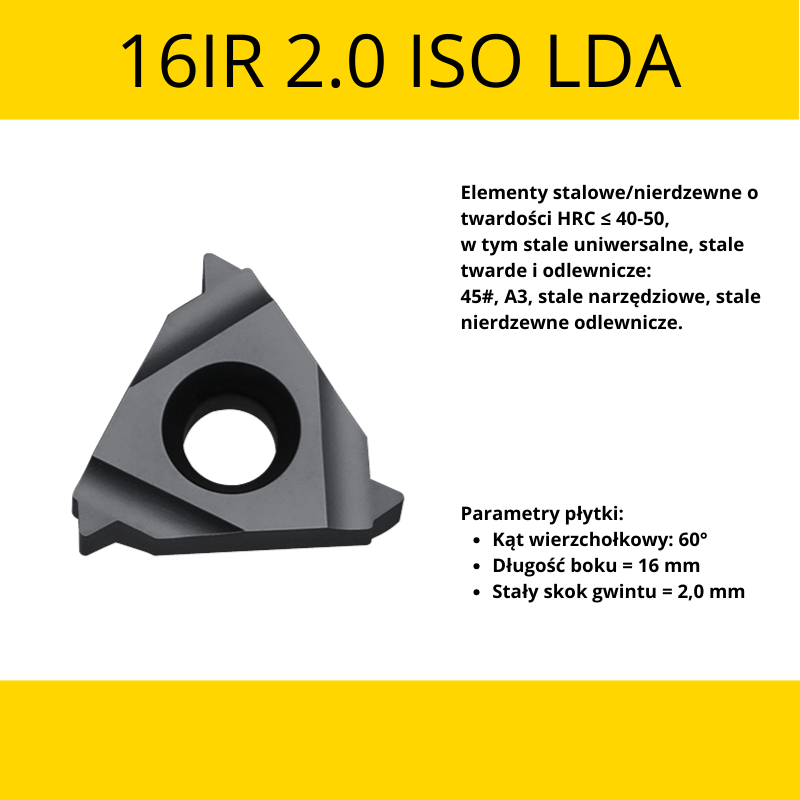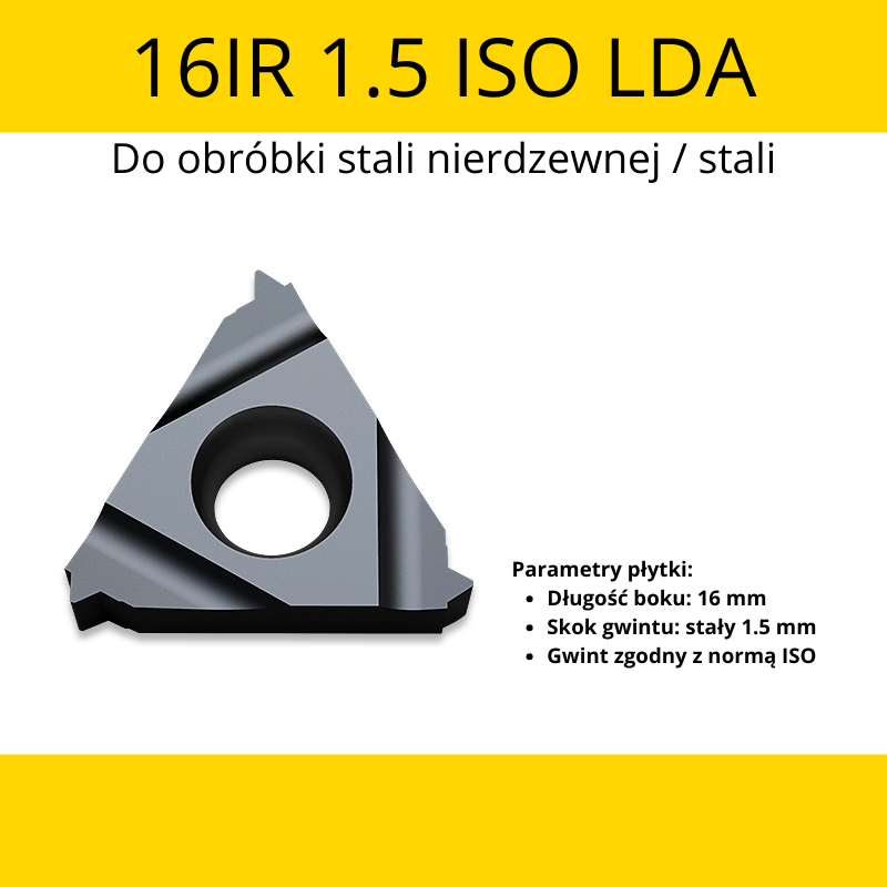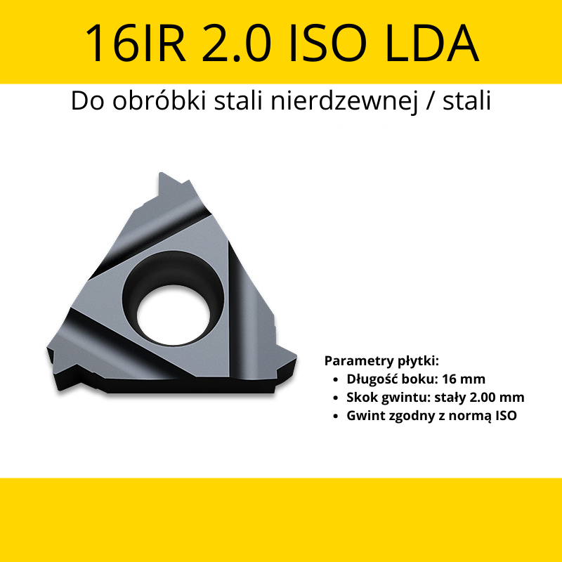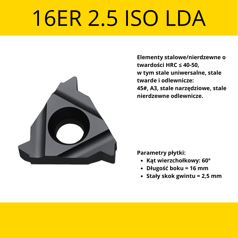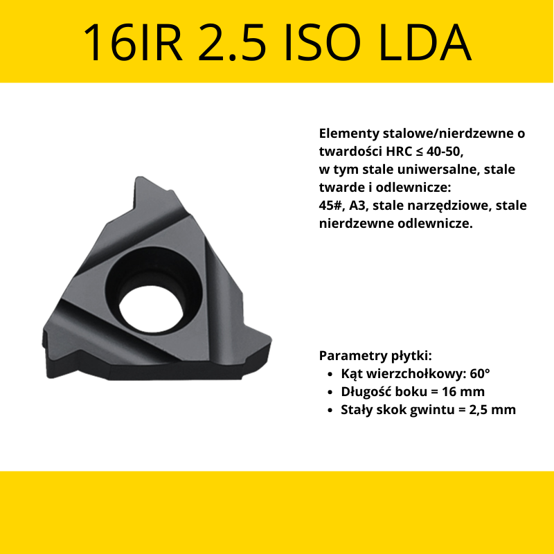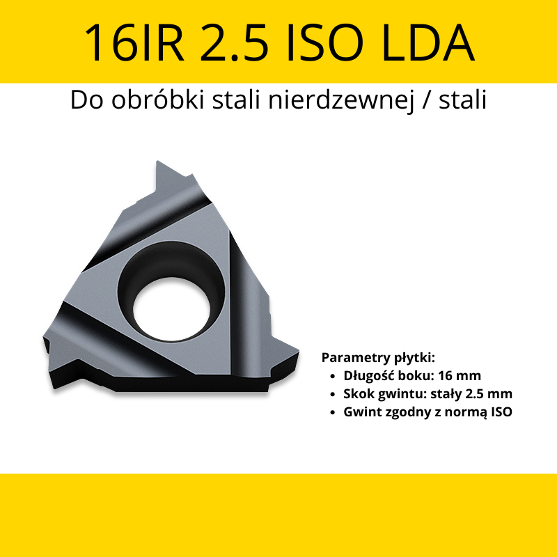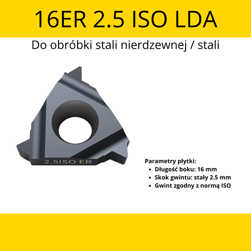 16IR 2.5 ISO LDA – płytka do gwintu wewnętrznego, skok 2.5 mm, standard ISO.
