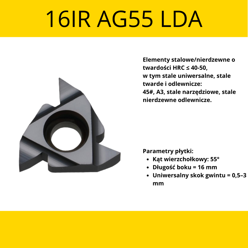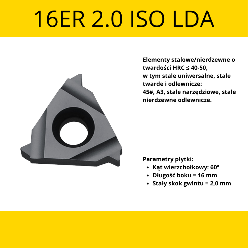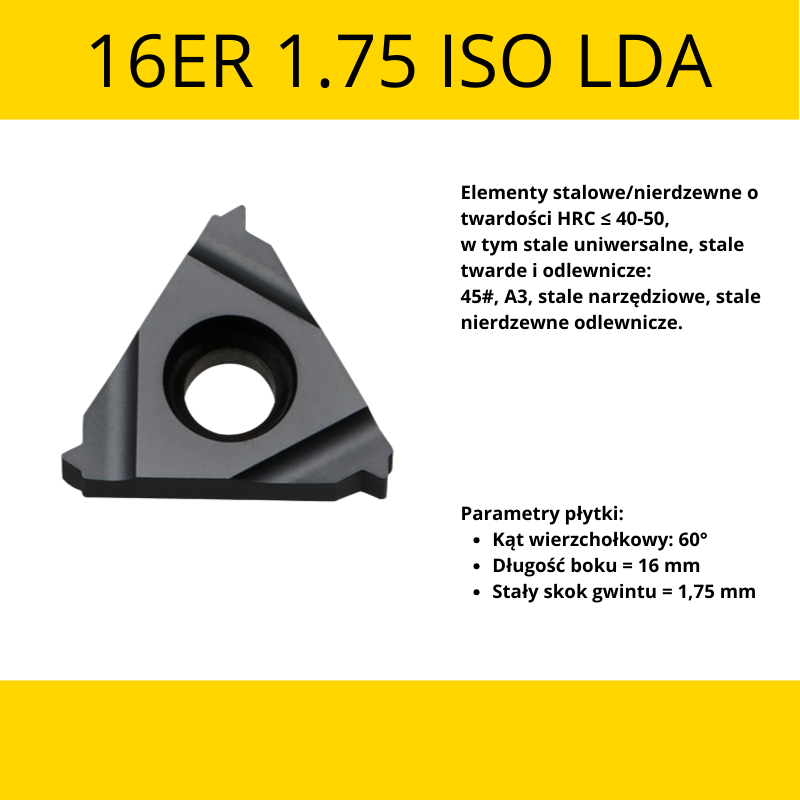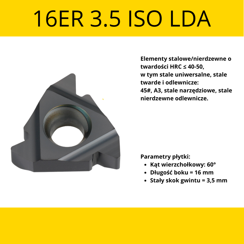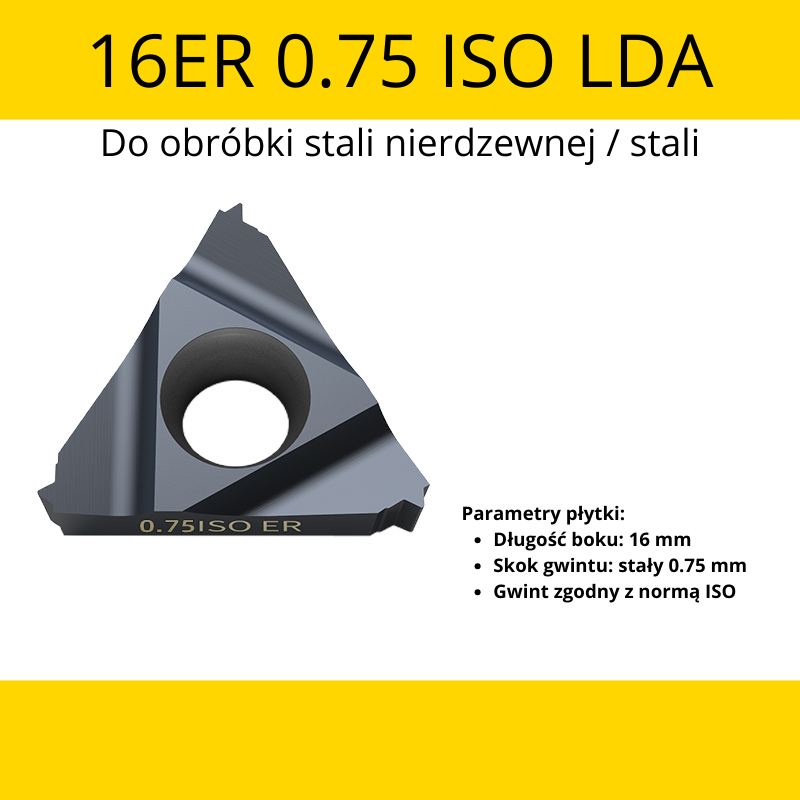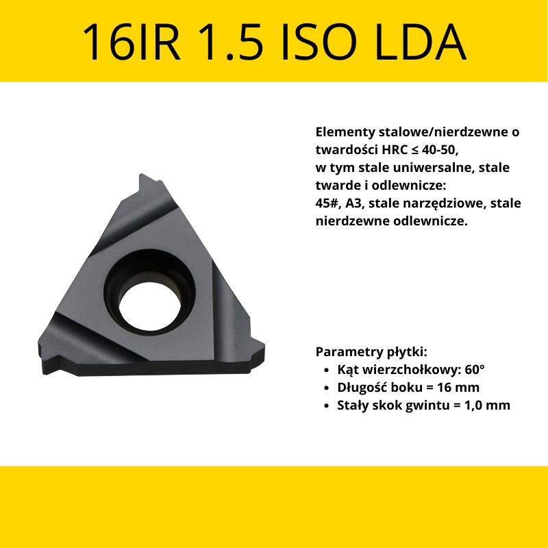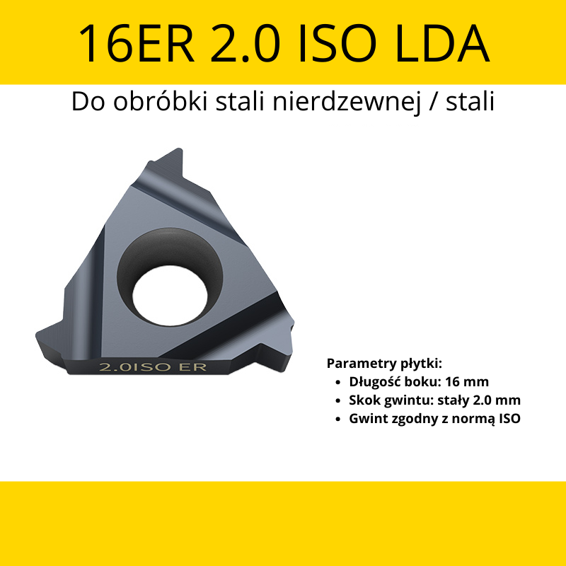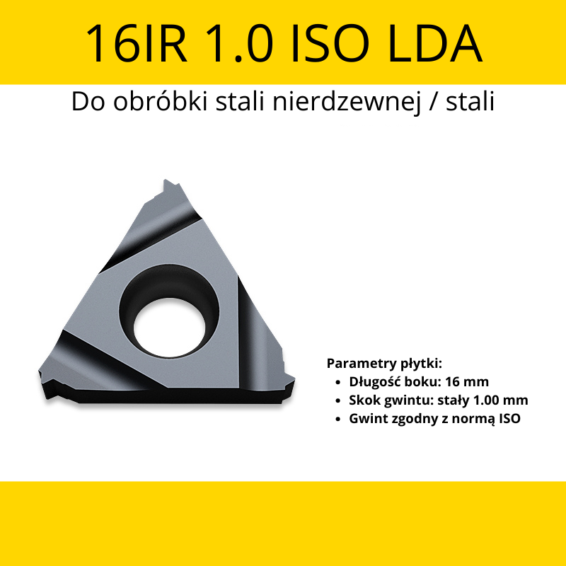 16IR 2.5 ISO LDA – płytka do gwintu wewnętrznego, skok 2.5 mm, standard ISO.