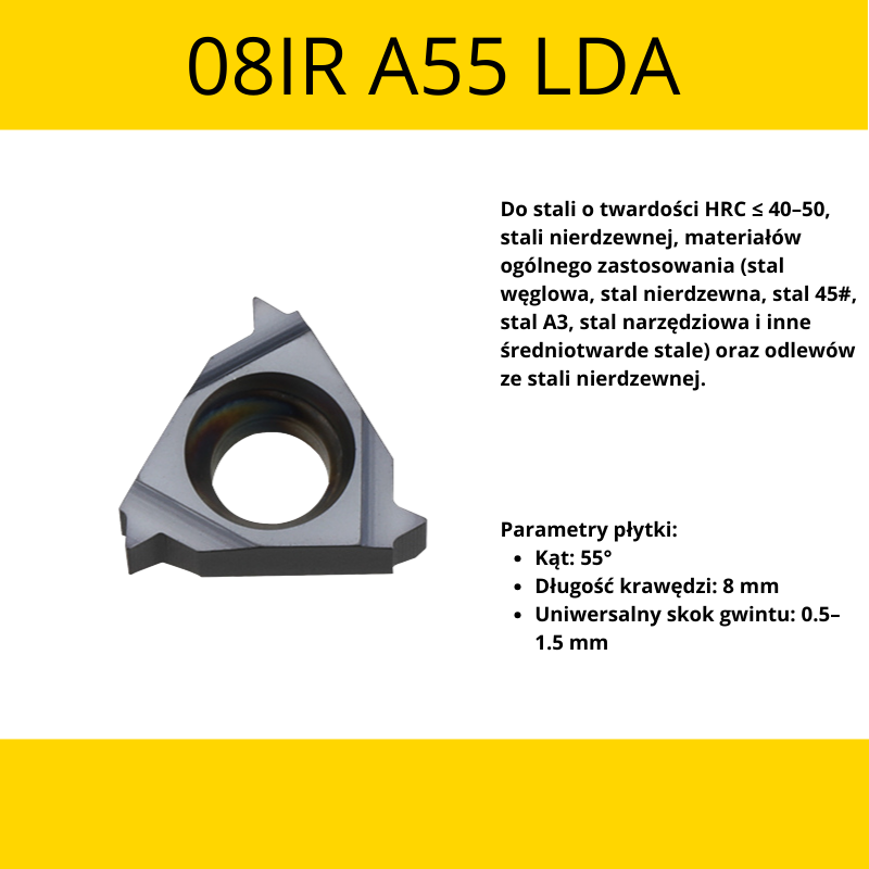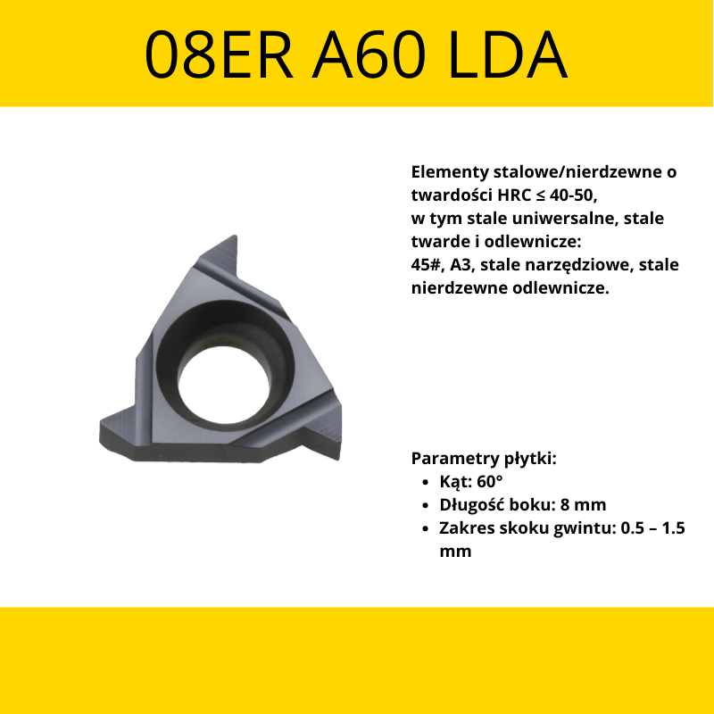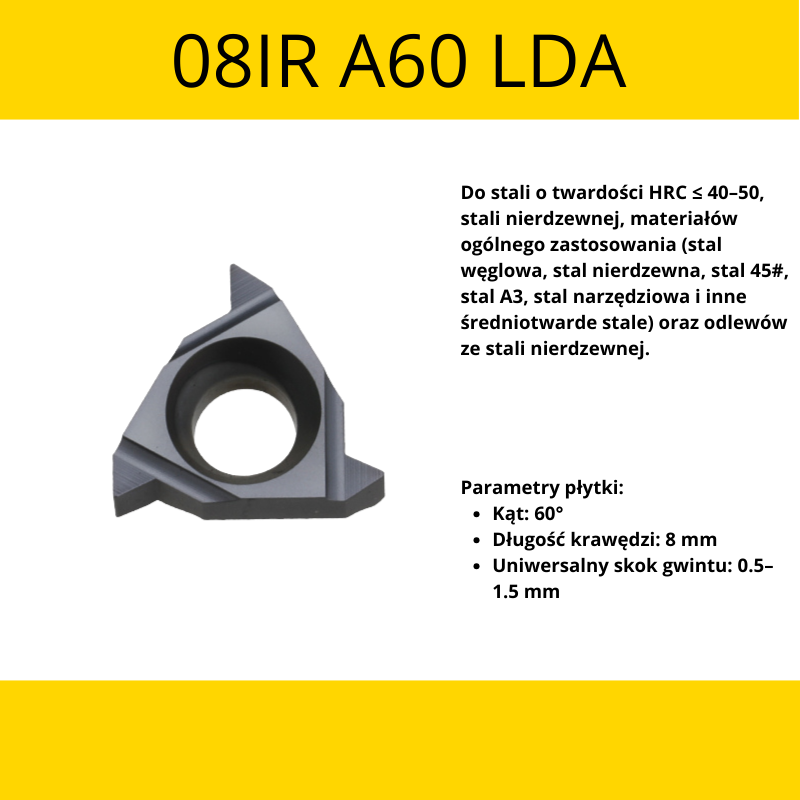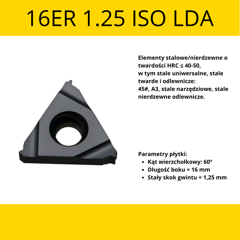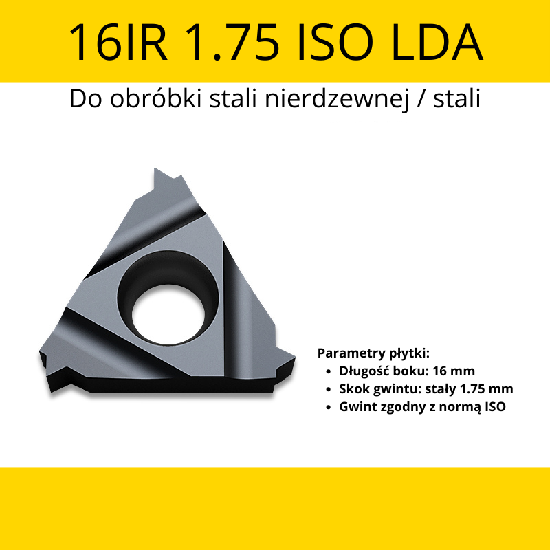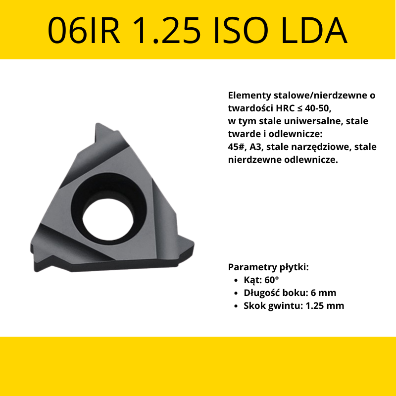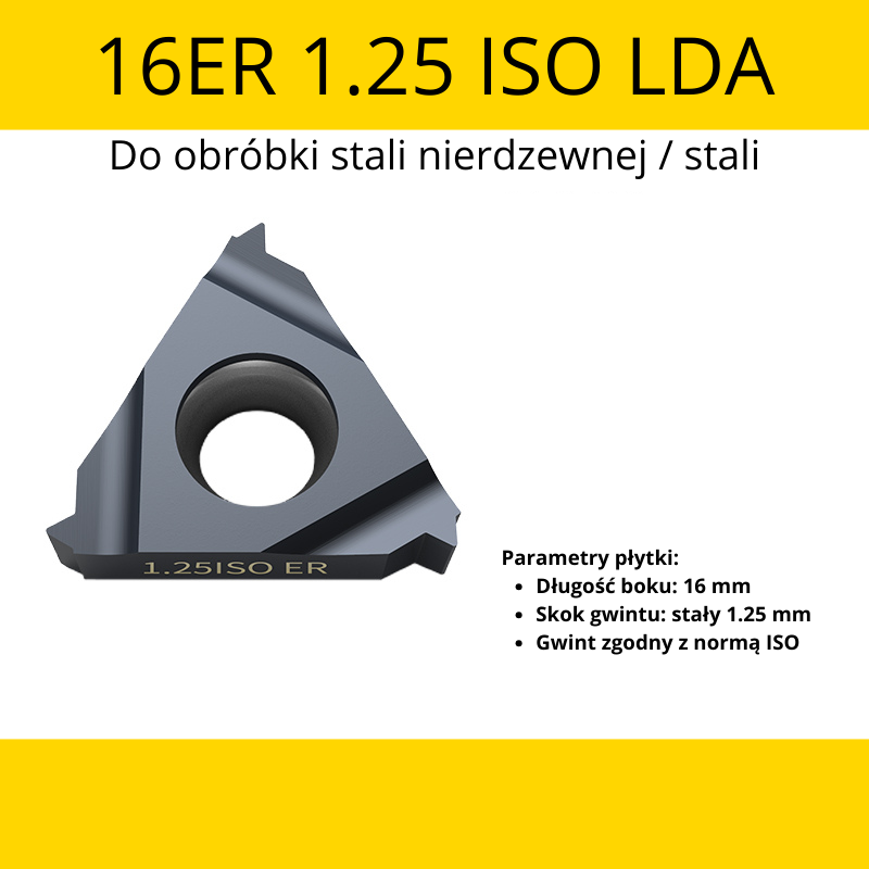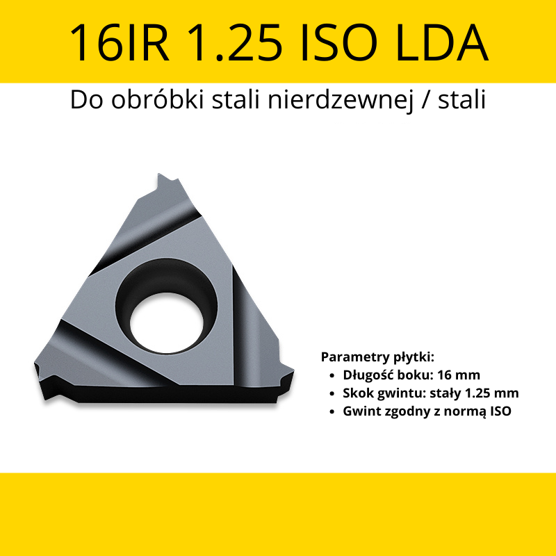08IR 1.25 ISO LDA – mała płytka do gwintu wewnętrznego ISO, skok 1.25 mm.