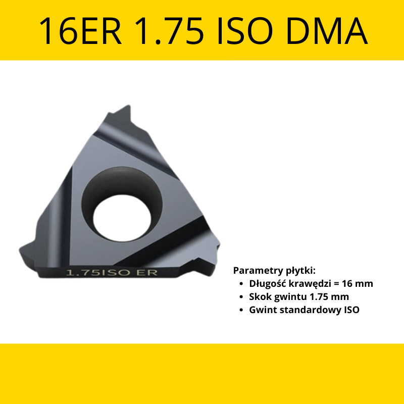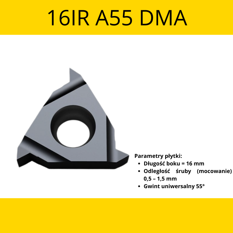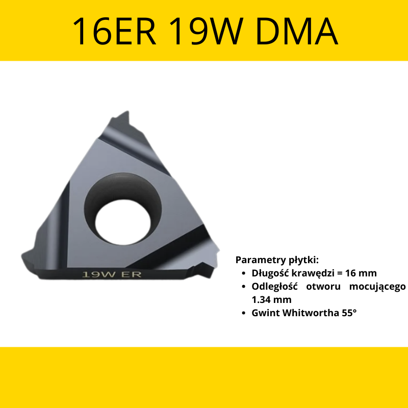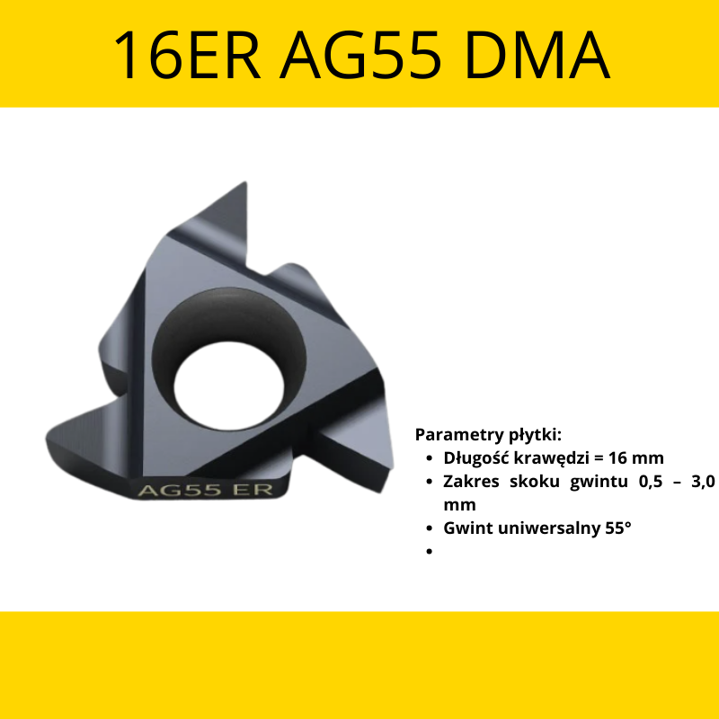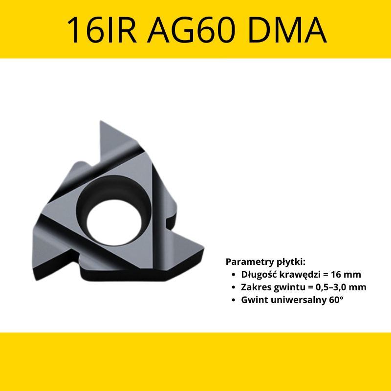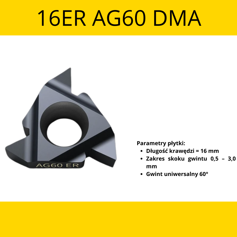 16ER AG60 DMA – płytka do gwintu zewnętrznego, profil gwintu 60°, standard AG60.