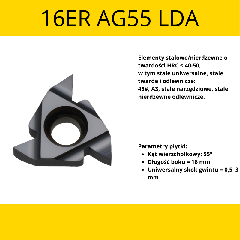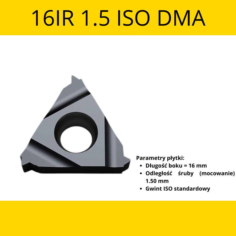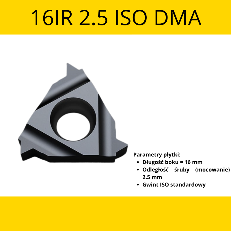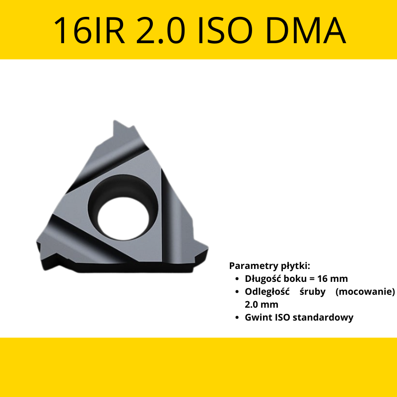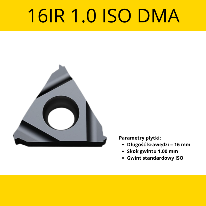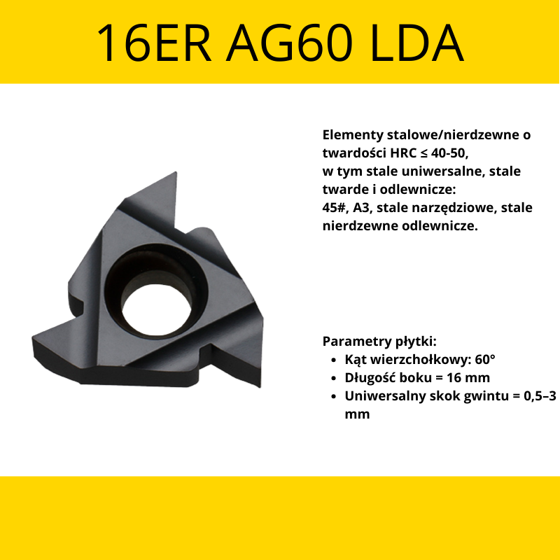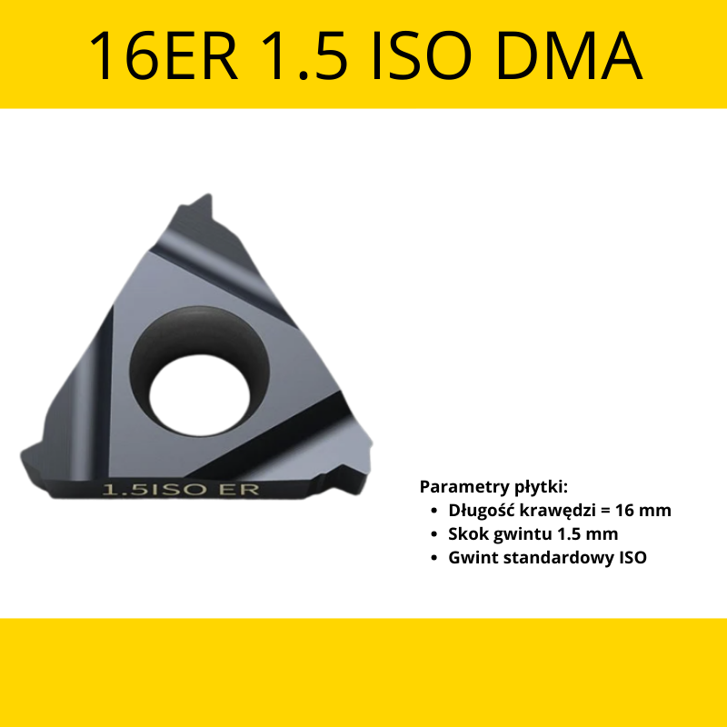 16ER AG60 DMA – płytka do gwintu zewnętrznego, profil gwintu 60°, standard AG60.
