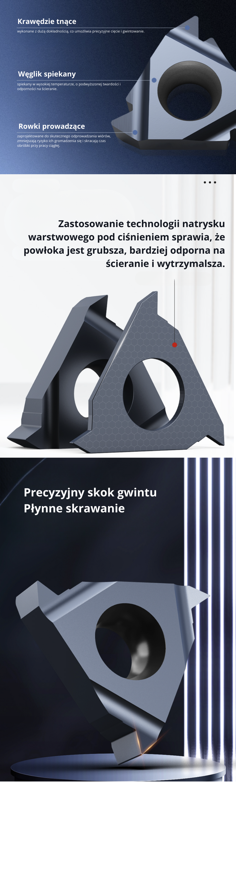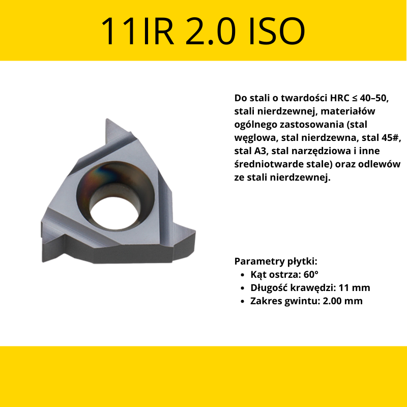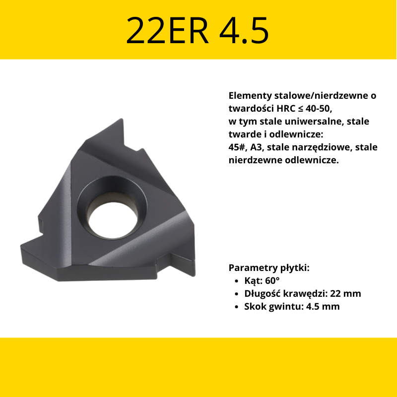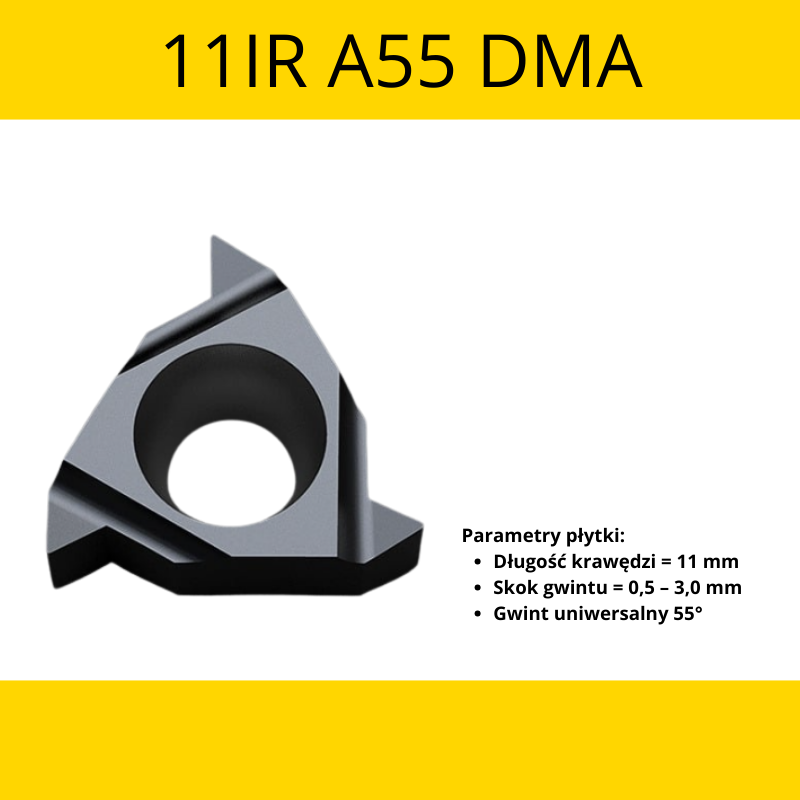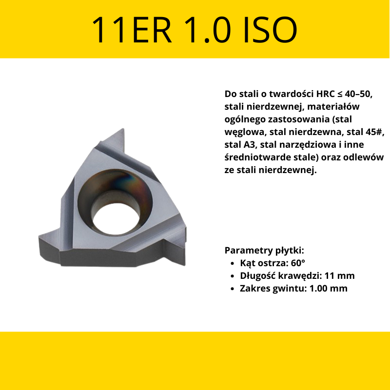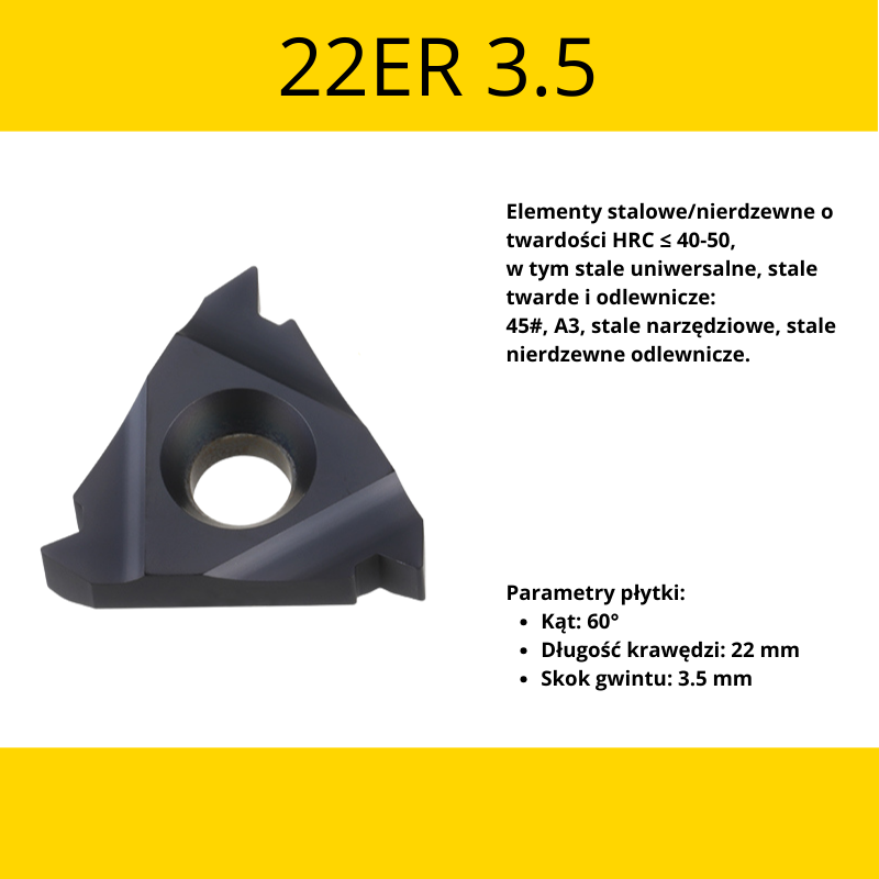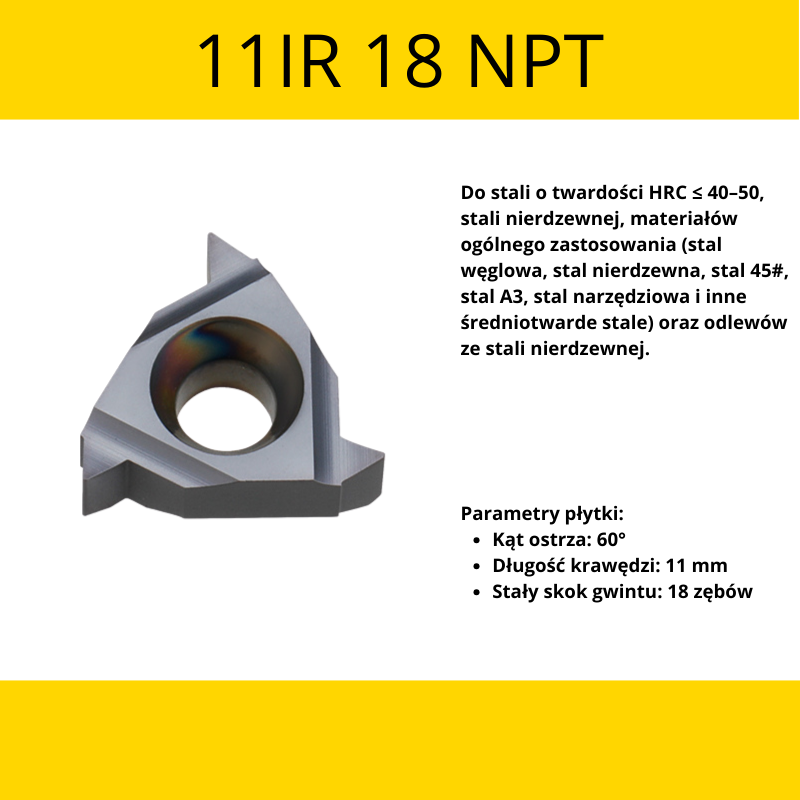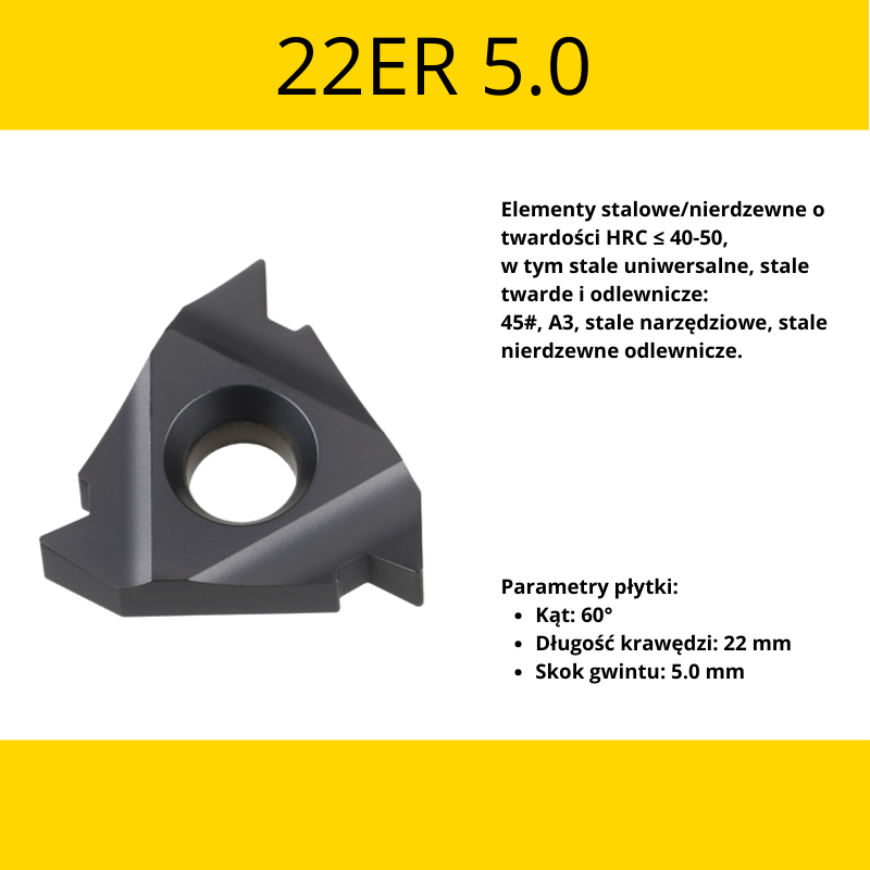 Płytki tokarskie ER (zewnętrzne) i IR (wewnętrzne) przeznaczone są do nacinania gwintów w różnych standardach: ISO, BSPT, NPT, UN, Whitworth, AG55, AG60.