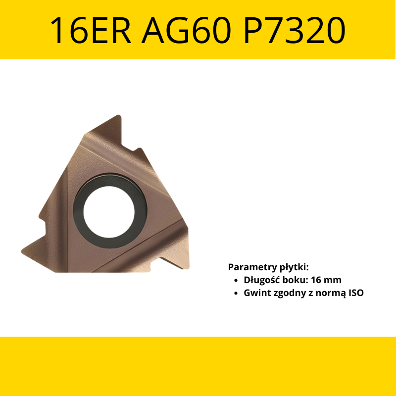16ER 1.0 ISO P7320 – płytka do gwintu zewnętrznego ISO, skok 1.0 mm.