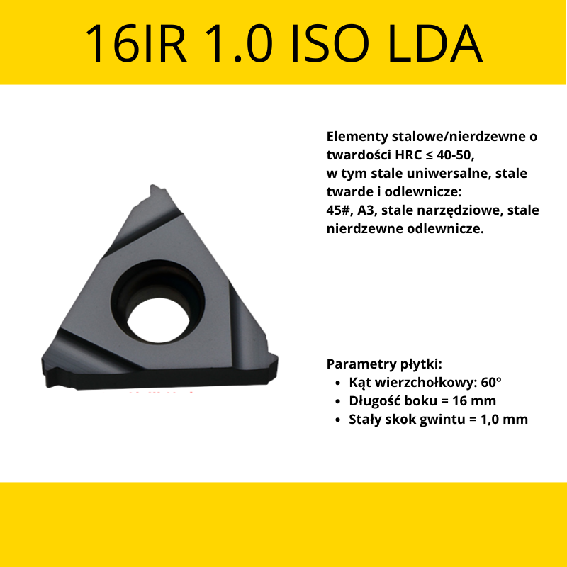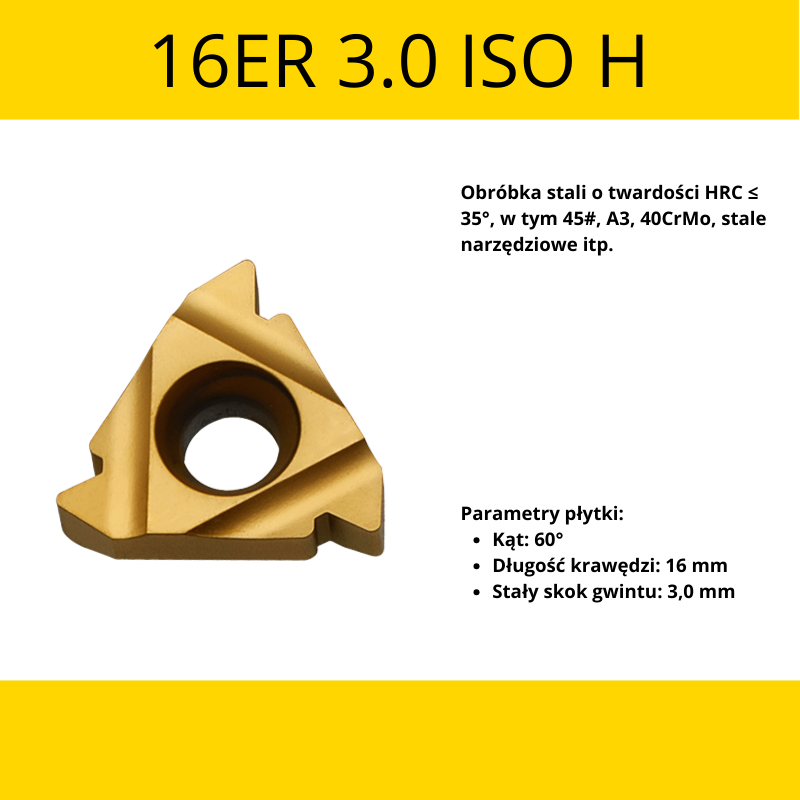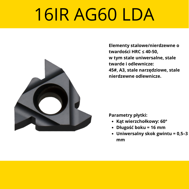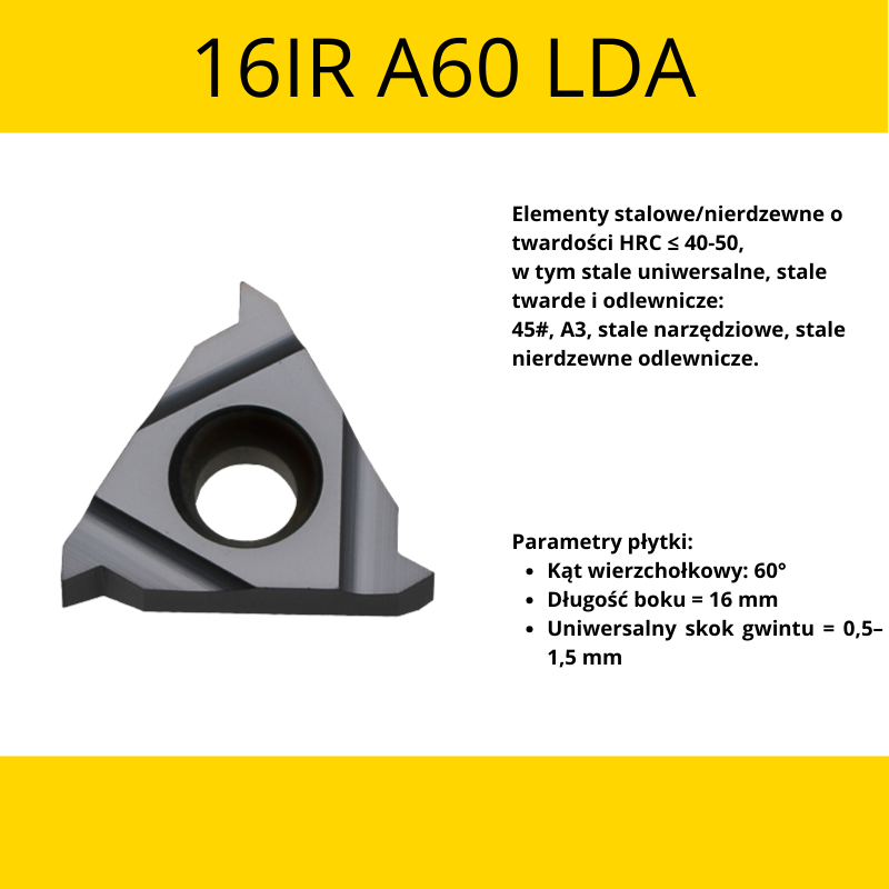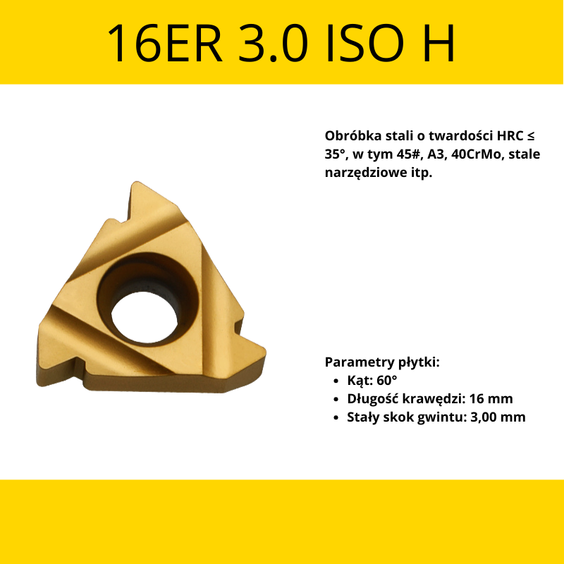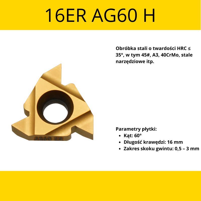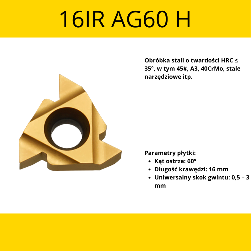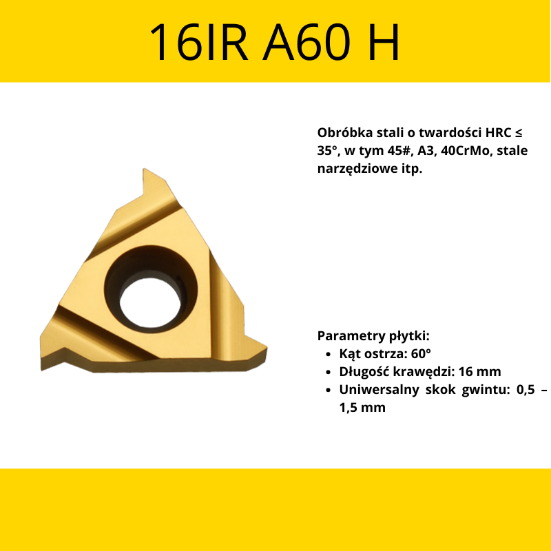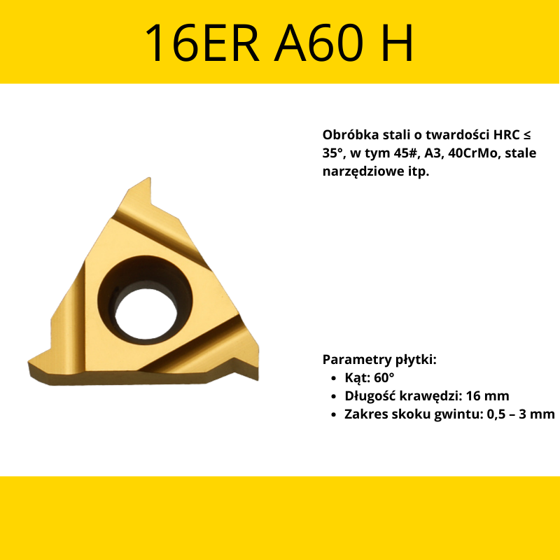 16IR A60 H – płytka wewnętrzna do gwintu metrycznego 60°, do stali hartowanej.