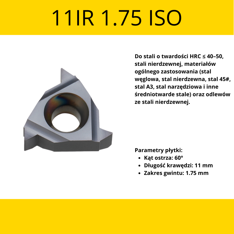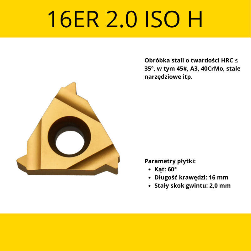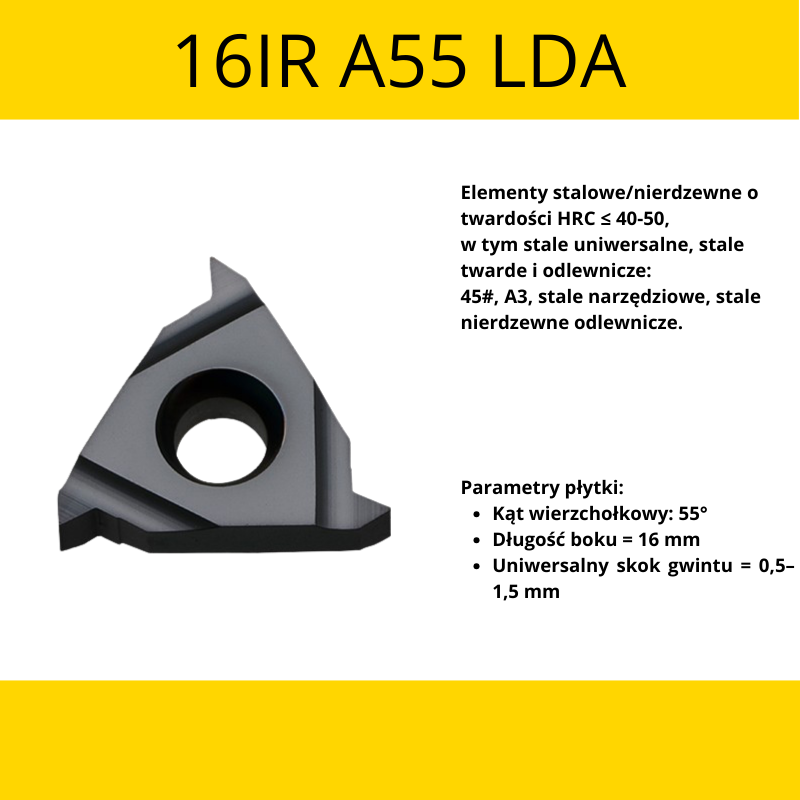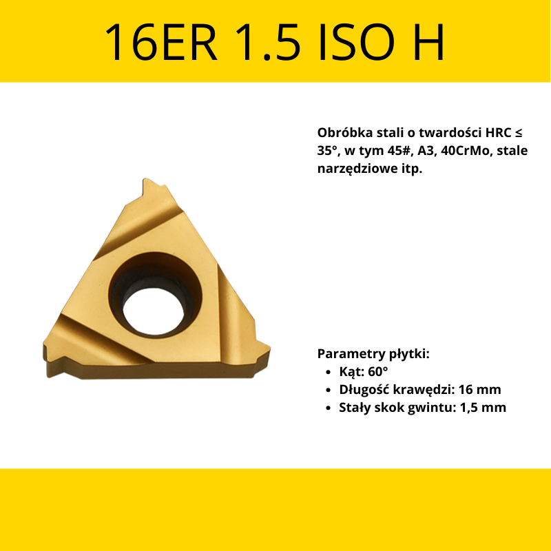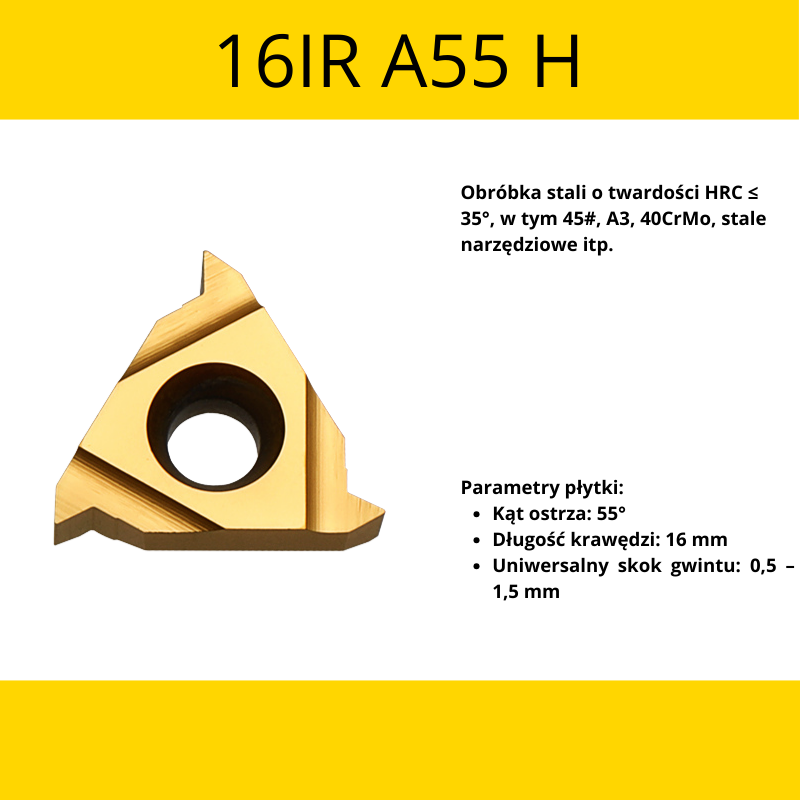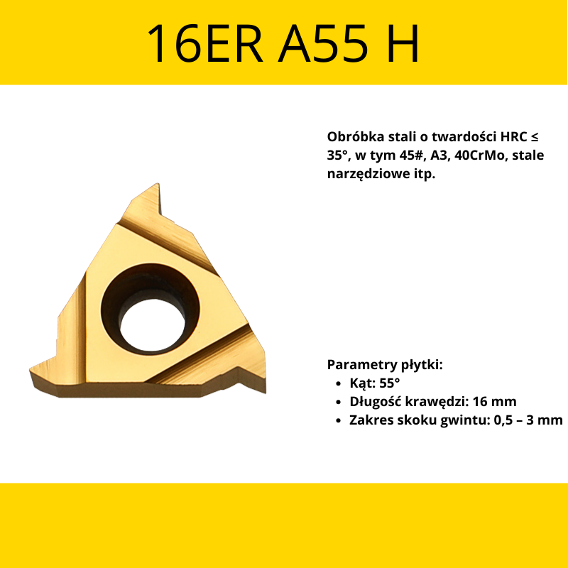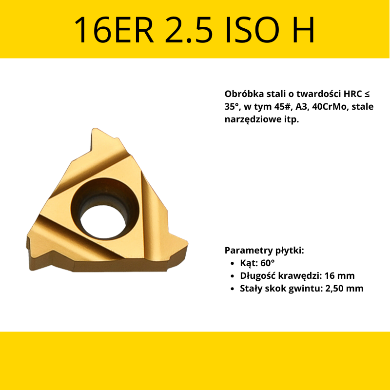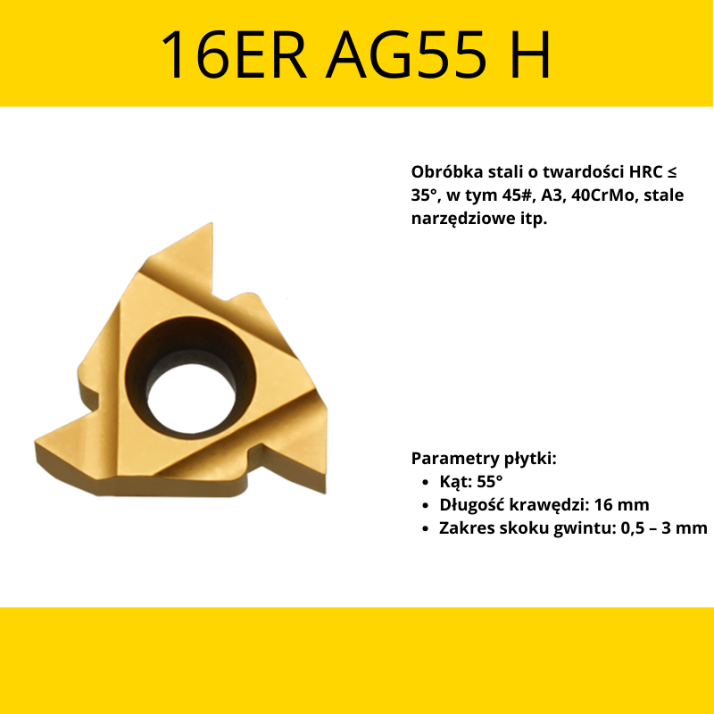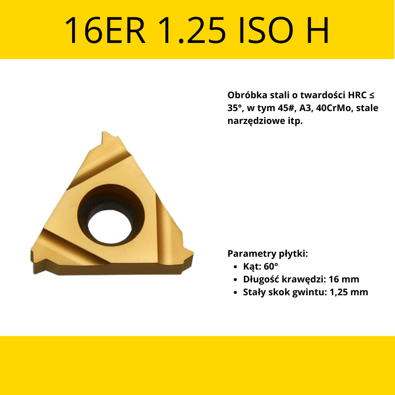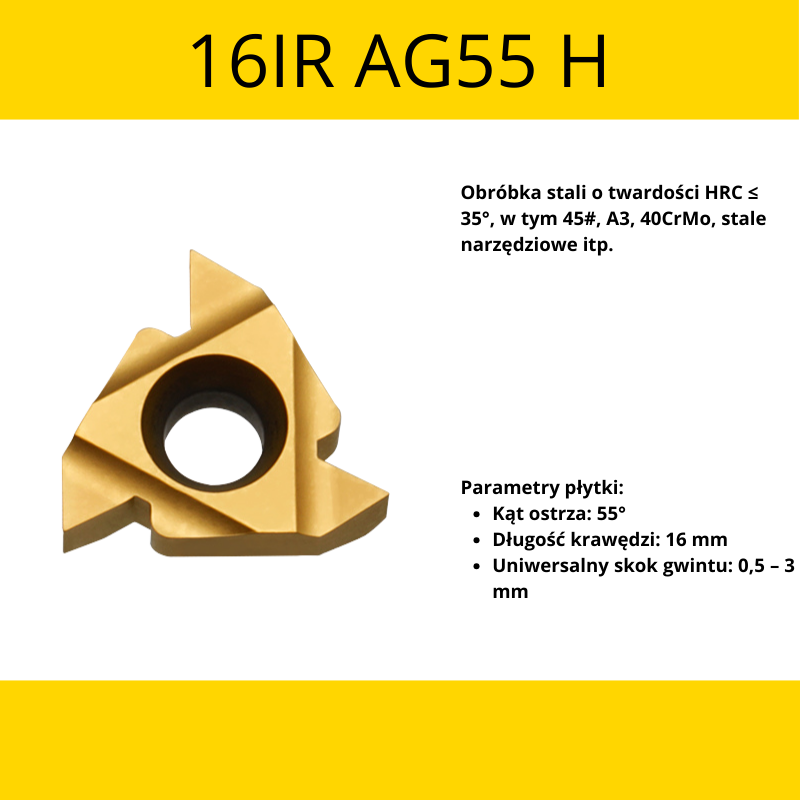 16IR A60 H – płytka wewnętrzna do gwintu metrycznego 60°, do stali hartowanej.