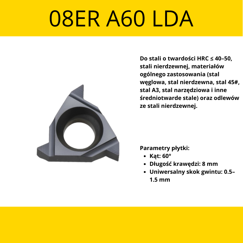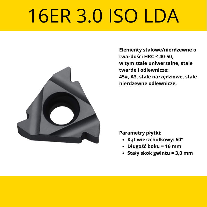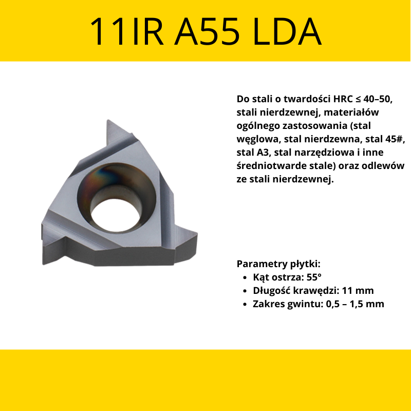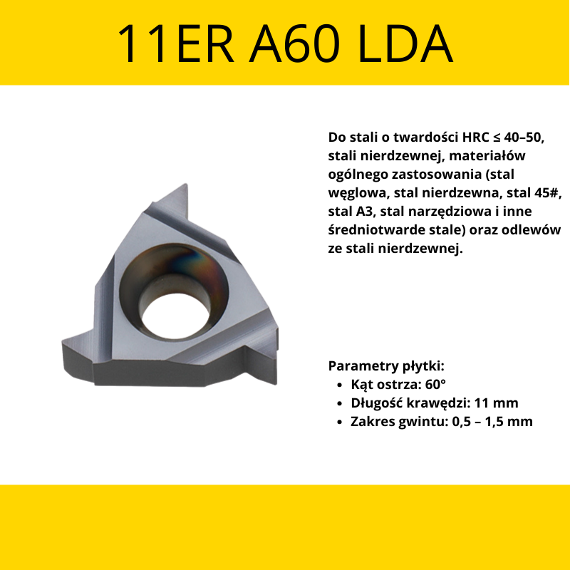 11ER A60 LDA – płytka do gwintu zewnętrznego metrycznego 60°, w rozmiarze 11.
