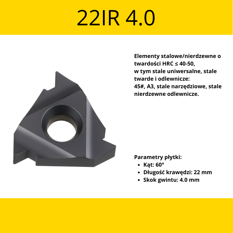 22IR 4.0 – płytka do gwintu wewnętrznego o skoku 4.0 mm.