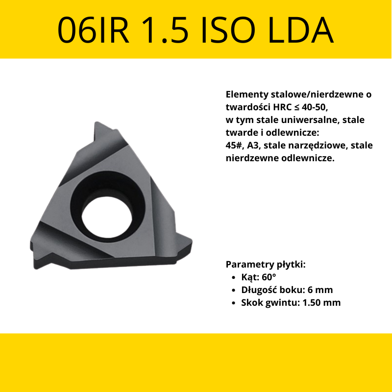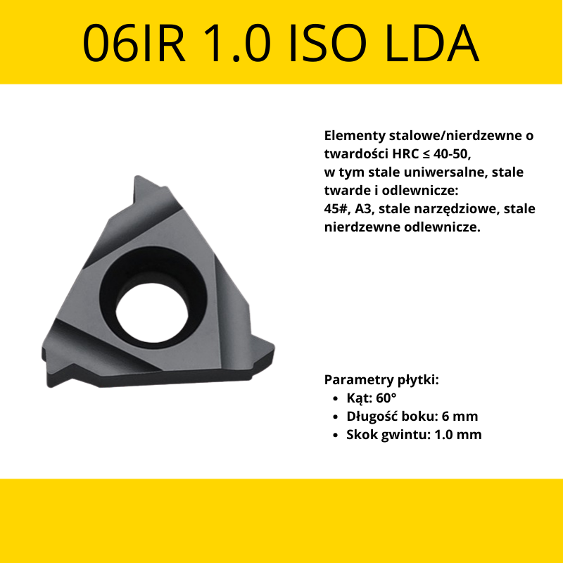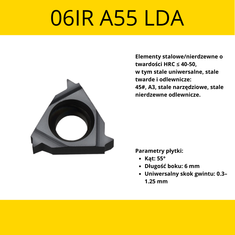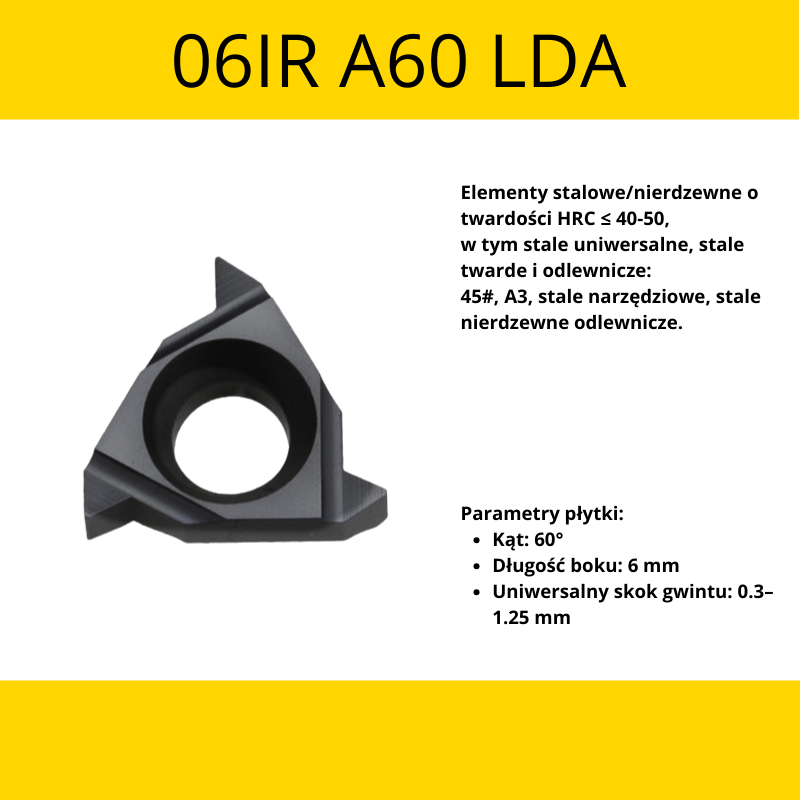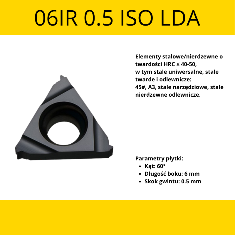 06IR 0.5 ISO LDA – płytka do precyzyjnego gwintu wewnętrznego ISO, skok 0.5 mm.