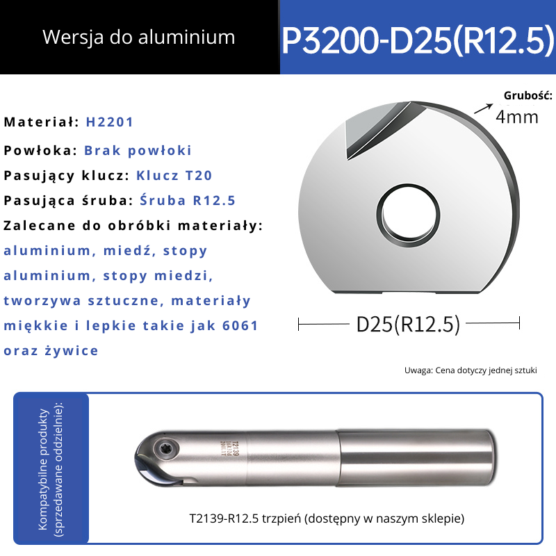 Wersja do aluminium P3204-D25-R12.5
