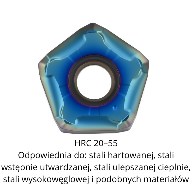 Płytki PNMU090508 do m.in planowania, frezowania pionowo w dół (w szczególnych warunkach technologicznych- tzw.plunge milling) i usuwania materiału z wysokimi wartościami posuwu.