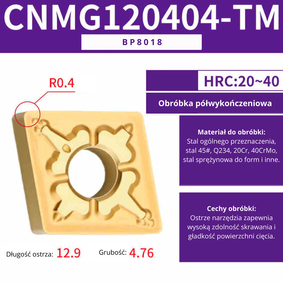 CNMG120404-MA BB5002A; CNMG120408-MA BB5002A; CNMG120408-TM BP8218; CNMG120404-TM BP8018; CNMG120408-TM BP8018; CNMG120412-TM BP8018; CNMG120404-CQ BP8018; CNMG120408-CQ BP8018; CNMG120412-CQ BP8018; CNMG120404-TM BP8218; CNMG120412-TM BP8218; CNMG120404-CQ BP8218; CNMG120408-CQ BP8218; CNMG120412-CQ BP8218; CNMG120404-TC BP8118; CNMG120408-TC BP8118; CNMG120412-TC BP8118; CNMG120404-TC DK2018; CNMG120408-TC DK2018; CNMG120412-TC DK2018; CNMG160608-TC BP8018; CNMG160612-TC BP8018; CNMG190608-TC BP8018; CNMG190612-TC BP8018