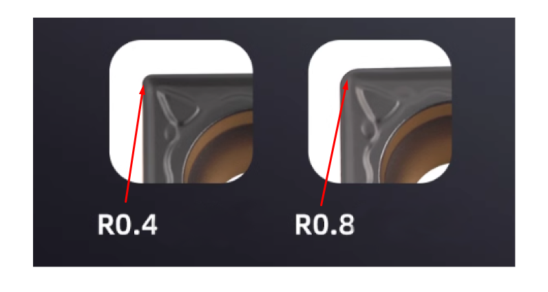 - Promień naroża re - 0,8 lub 0,4 mm.