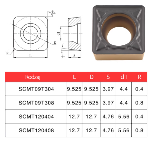 Rozmiary płytki SCMT 120404 i SCMT 120408
