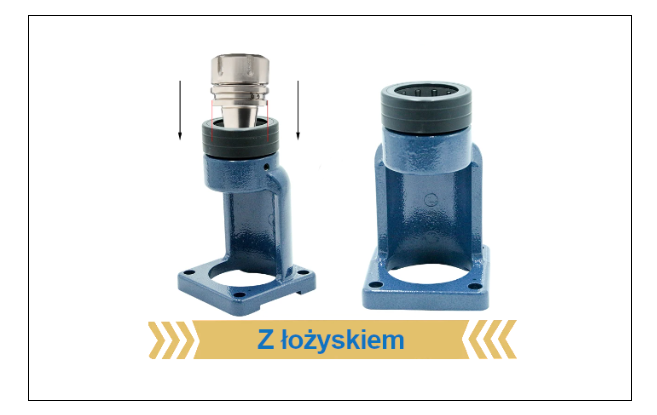 - Uchwyt posiada łożysko wałeczkowe, które stabilizuje oprawkę, zapobiegając jej obrotowi w obie strony.