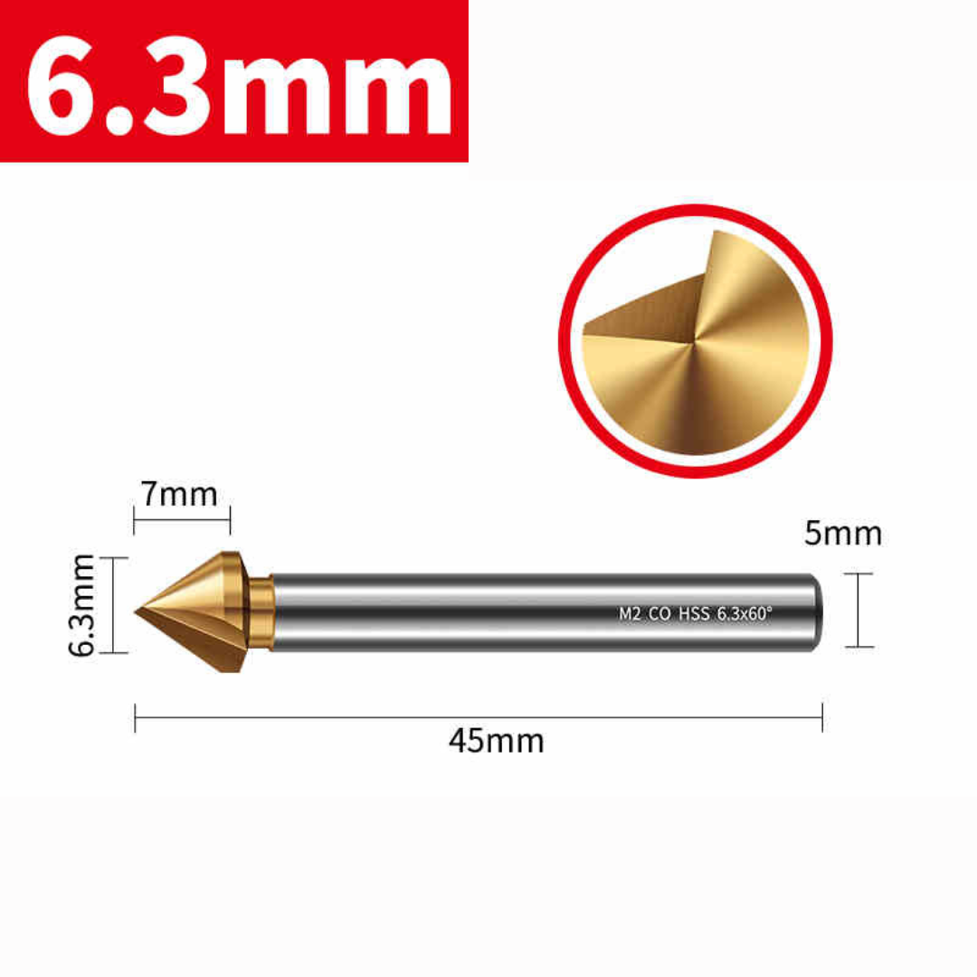 Pogłębiacz stożkowy 1-ostrzowy Fi4.5-fi60, 90°, 60°- HSS-CO-M2 | chwyt walcowy