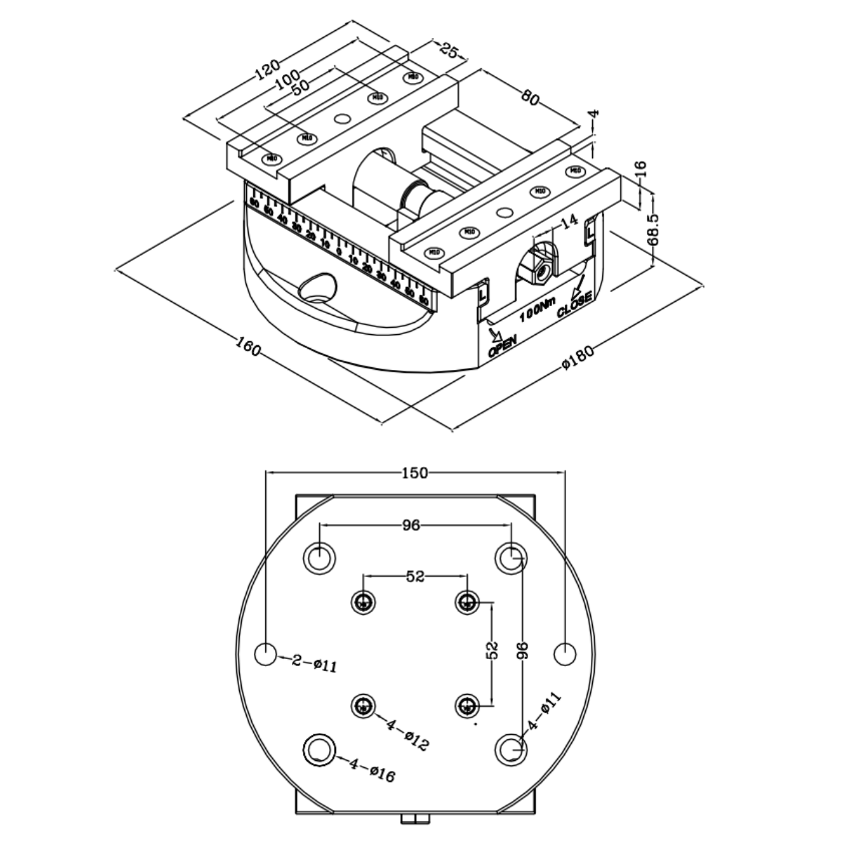 - Możliwość przystosowania imadła do pracy z systemem paletowym - szybiego demontażu/wymiany imadła oraz wykonania podstawy w wersji kompatybilnej z ZeroPoint APS, WPS, ZeroAct.