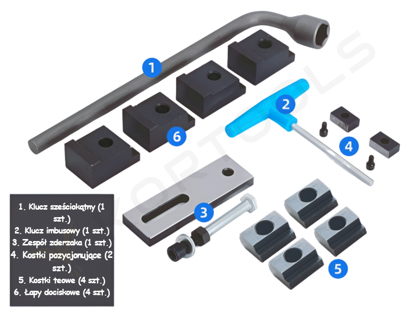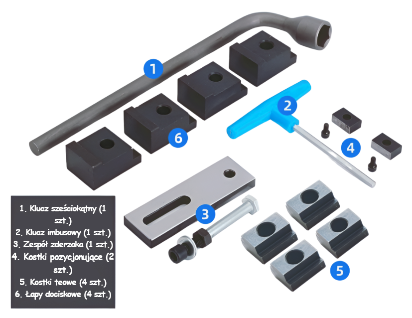 - Kostki do ustalania w rowkach teowych obrabiarki (4 szt.)