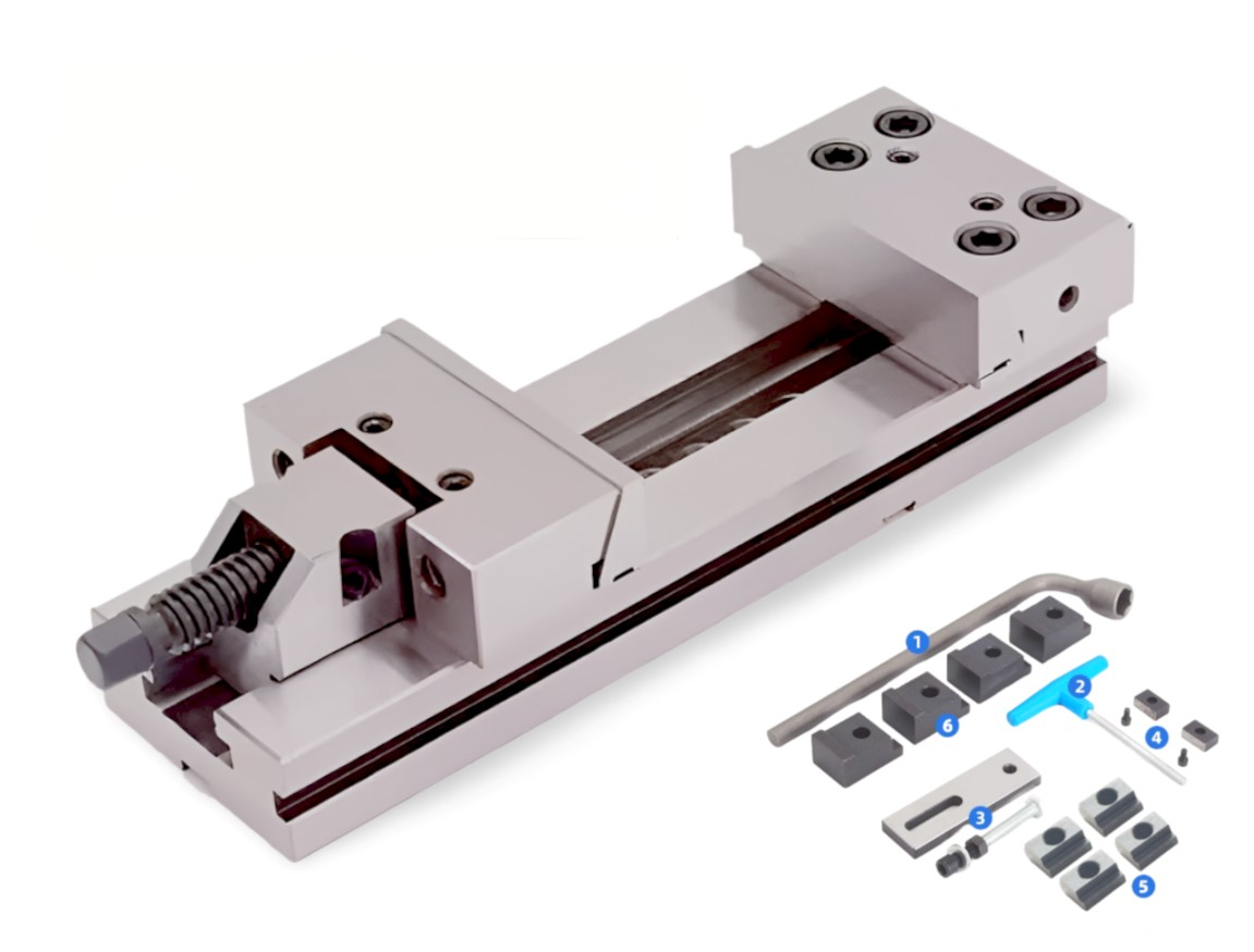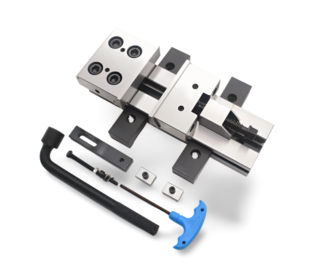 - Dopuszczalna odchyłka wysokości podstawy ±0,01 mm, co pozwala stosować kilka imadeł razem.