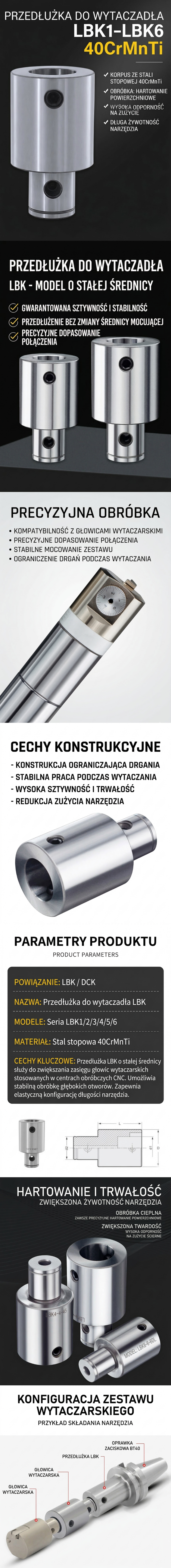 Sprawdź dostępne warianty LBK1 - LBK6 i dobierz odpowiednią długość przedłużki do swojej operacji wytaczania.
