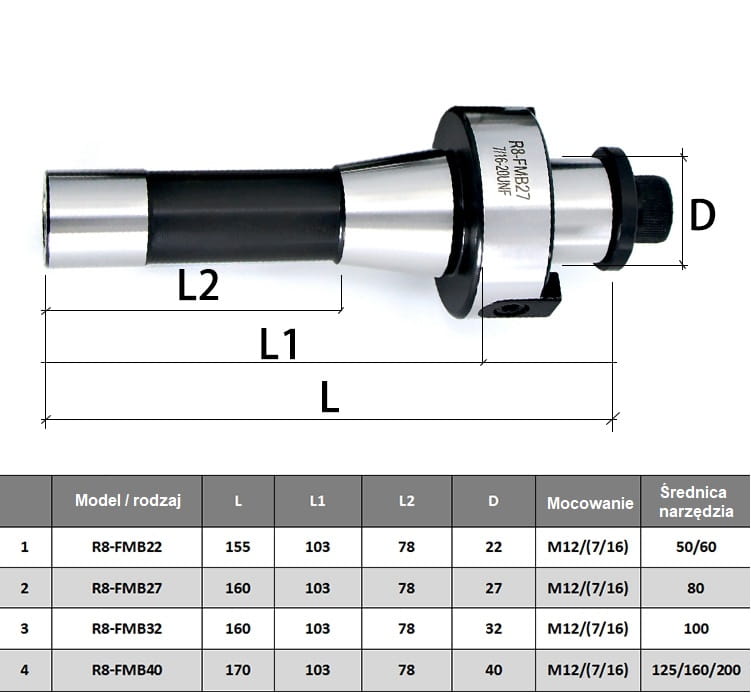 R8 FMB uchwyt narzędziowy: FMB22, FMB27, FMB32, metryczny M12, 7/16, uchwyt do frezarki manualnej