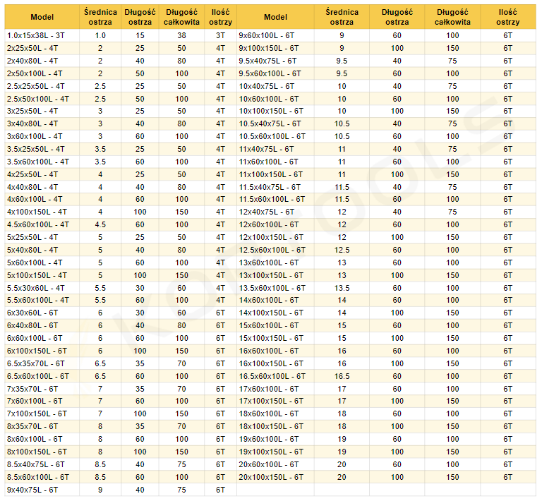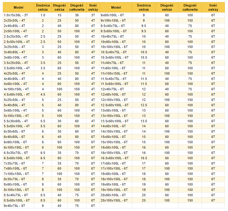 - Średnice ostrza: od Ø1 do Ø20 - dostępne na zamówienie nawet co 0,01mm (nie posiadamy wybranego rozmiaru? Skontaktuj się z nami!).