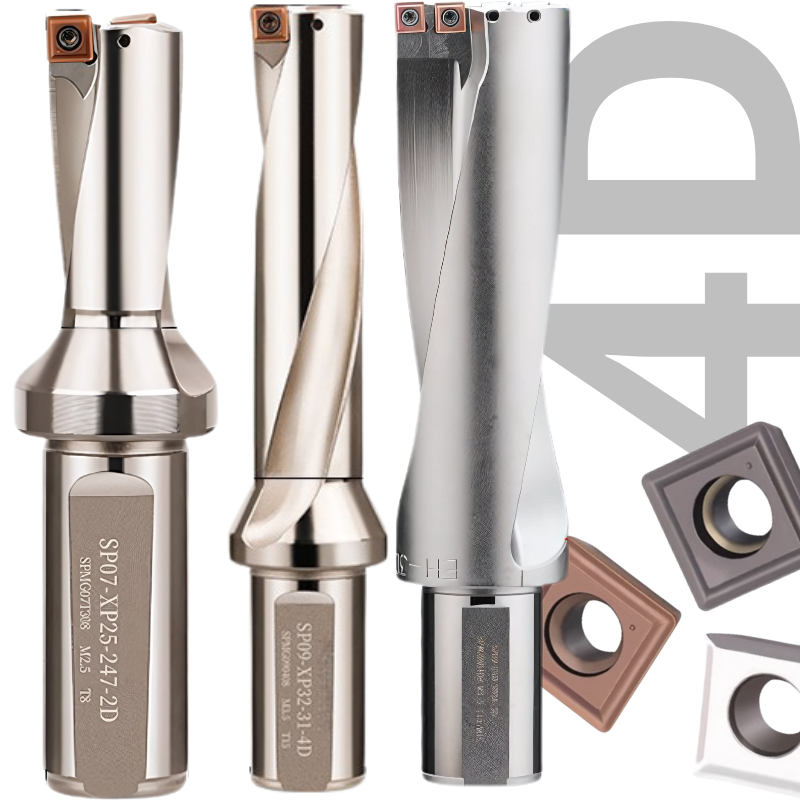 Wiertło płytkowe składane na płytki SP to narzędzie przeznaczone do obróbki otworów o zróżnicowanych głębokościach, w wersjach 4xD. Oznaczenie to odnosi się do maksymalnej głębokości wiercenia, która jest odpowiednio czterokrotnością średnicy narzędzia.